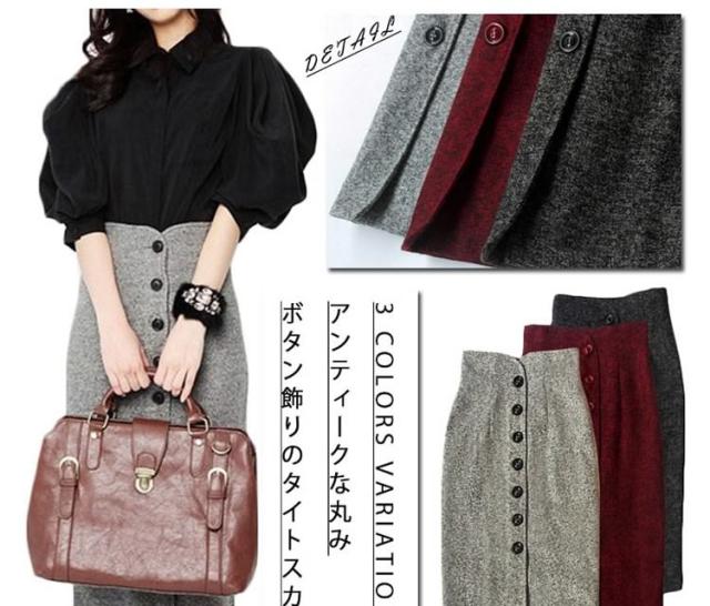 ハイウエスト×フロントボタンでStyleアップも間違いナシ◎タイトスカート レディース 秋冬 ハイウエスト 上品 ミディアム