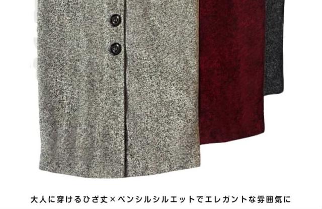 | アンティークな丸みボタン飾りのタイトスカート大人に穿けるひざ丈×ペンシルシルエットでエレガントな雰囲気にトレンドのミモレ丈は、肌みせが苦手が方でも、 取り入れやすい丈感!タイトだから、女性らしい美シルエットを演出してくれます。コーデ次第でカジュアルダウンもOKで1枚あるだけで着回し力アップ!! | |