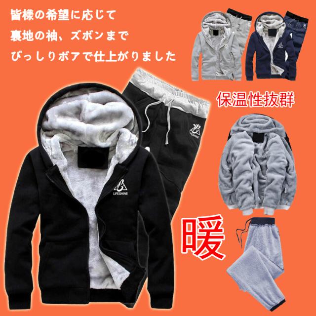 【期間限定セール中】スウェットセット上下セットアップ ジップアップ 裏ボア付きパーカーズボン裏ボア付きパンツ上下全体裏ボア付き暖かいフード付き防寒抜群長袖裏起毛男女兼用