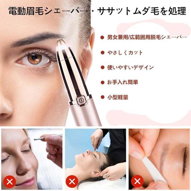 【肌を傷つけない&痛くない】普通の眉毛シェーバーと違いって、こちらの眉毛シェーバーは最新型360°盲点がない電動回転式内刃を採用し、お肌を傷つけにくいです。初心者や肌の損傷を気になる方に最適です。【二種類刃先&一本多用】眉毛カッターは、細かい部分やはみ出した眉毛もピンポイントで狙い撃ちできます。眉毛だけではなく、フェイス、耳毛、腕、指などの細かいうぶ毛をスッキリ剃れる多機能電気シェーバーです。