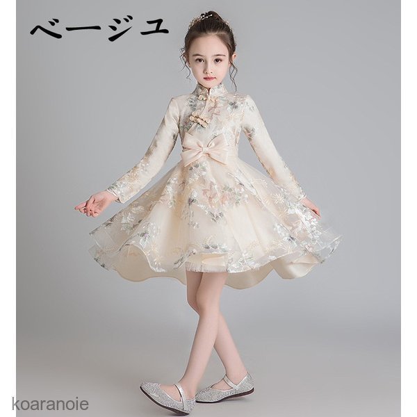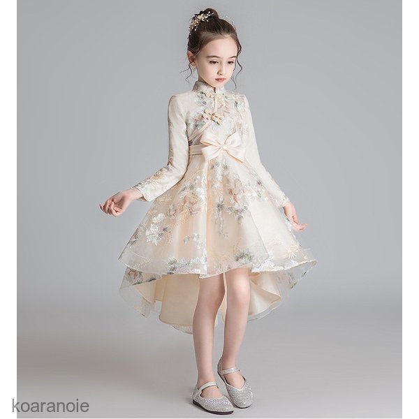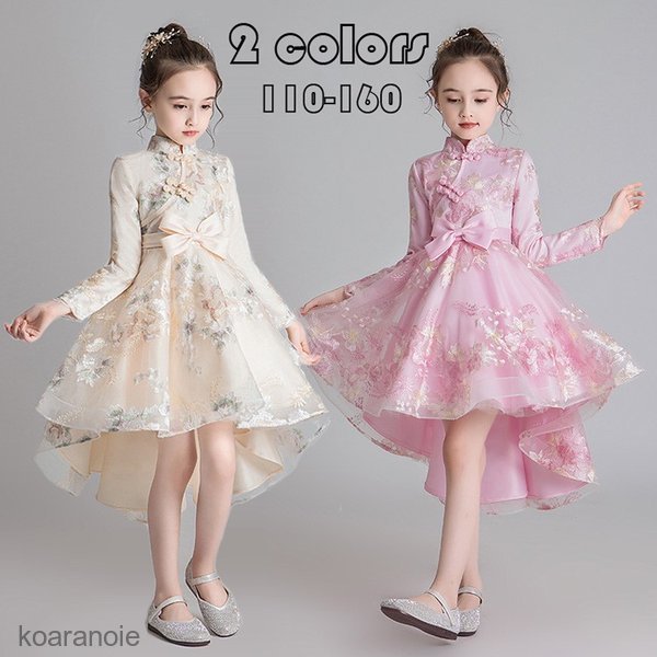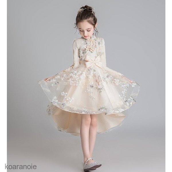 子供服ドレス 発表会 ピアノ発表会 結婚式 長袖 刺繍 フォーマル ドレス 女の子 二次会 花嫁 ジュニア キッズドレス パーティードレス プレ 上品ドレス 秋冬