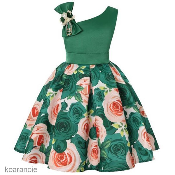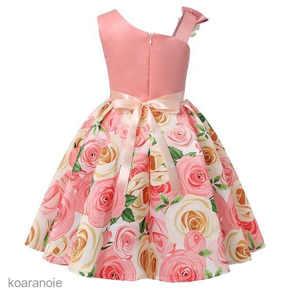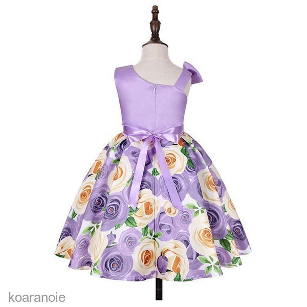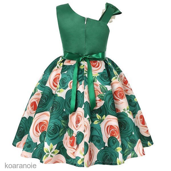 女の子 フォーマル ロング ドレス ワンピース リボン付き サテン 花柄 リボン 結婚式 お呼ばれ 発表会 ピアノ 入学式 正装 100 110 120 130 140 150