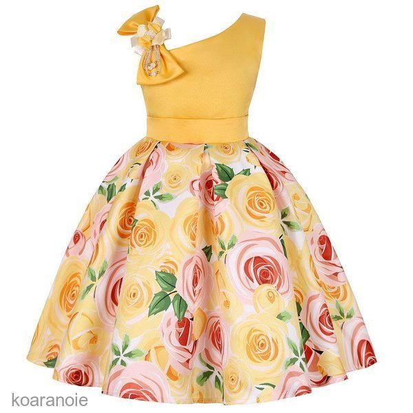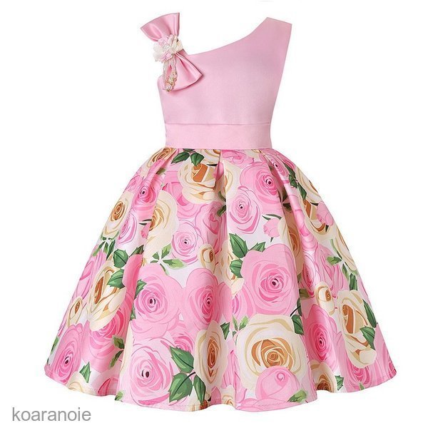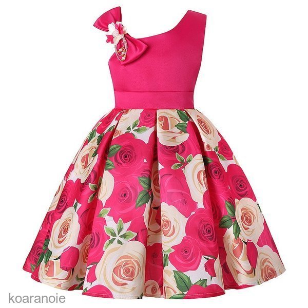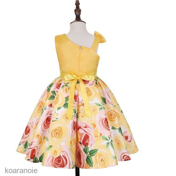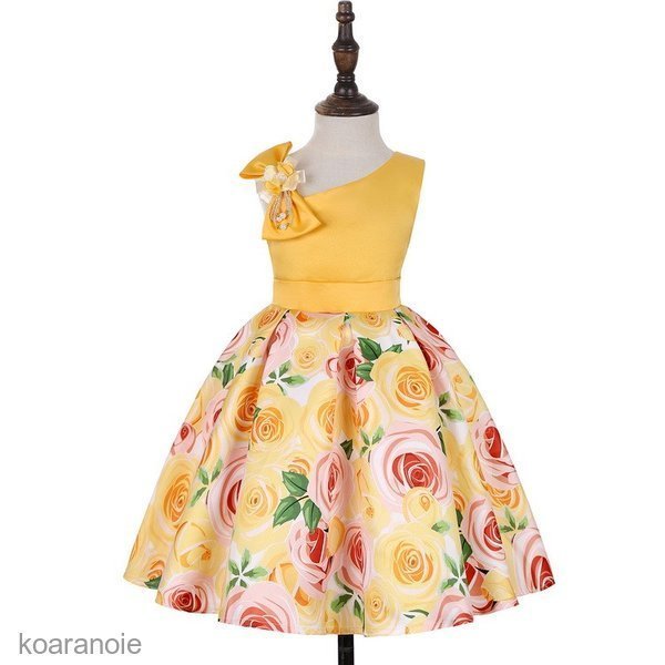 子供服 パーティードレス 女の子 フォーマル ロング ドレス ワンピース リボン付き サテン 花柄 リボン 結婚式 お呼ばれ 発表会 ピアノ 入学式