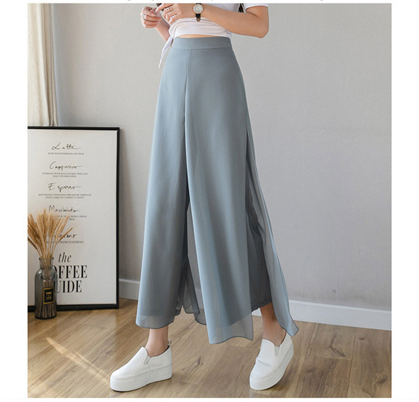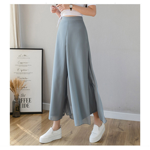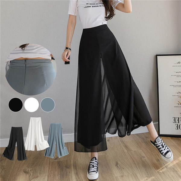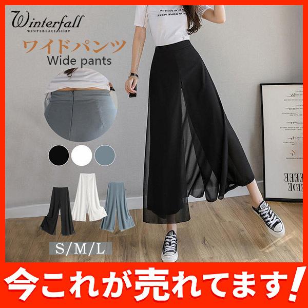 送料無料 赤字覚悟 ワイドパンツ レディース ガウチョスカン 春服 シフォン 美脚ポケット 九分丈 ファスナー 高級感 着痩せ スリット 春夏新作 快適 薄手