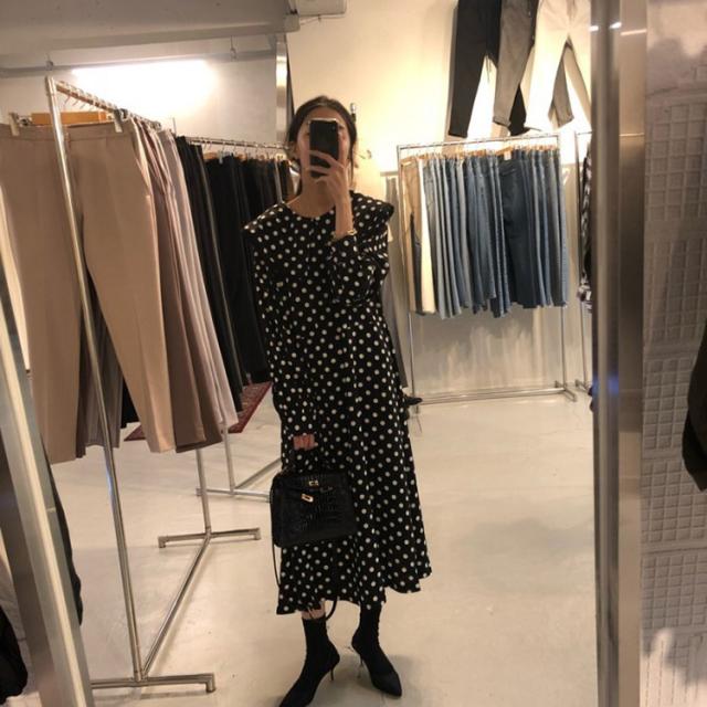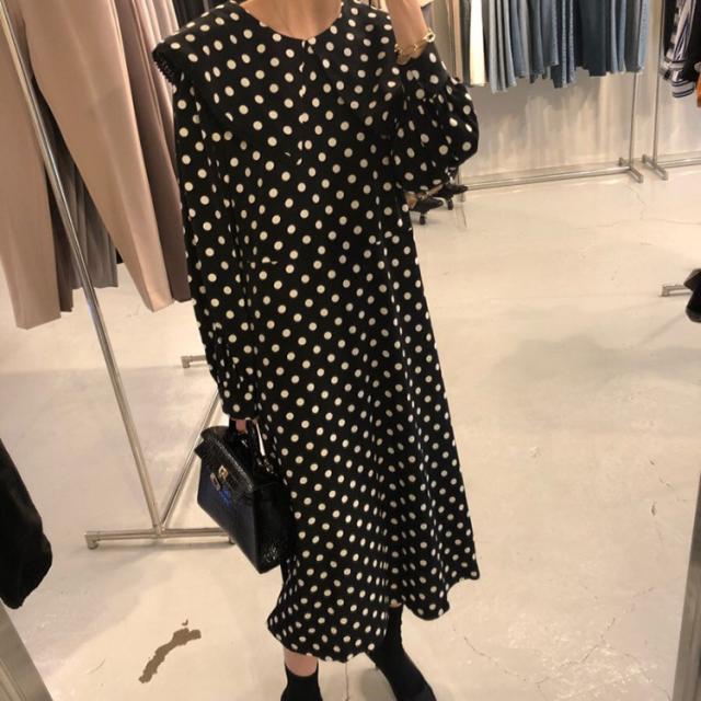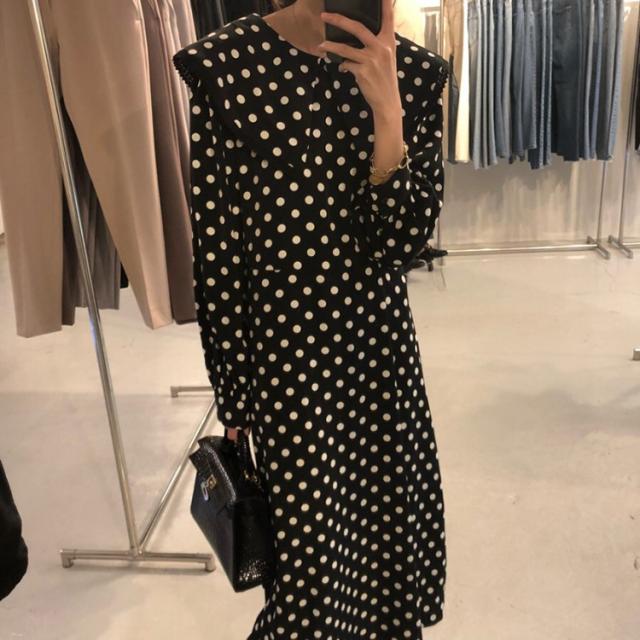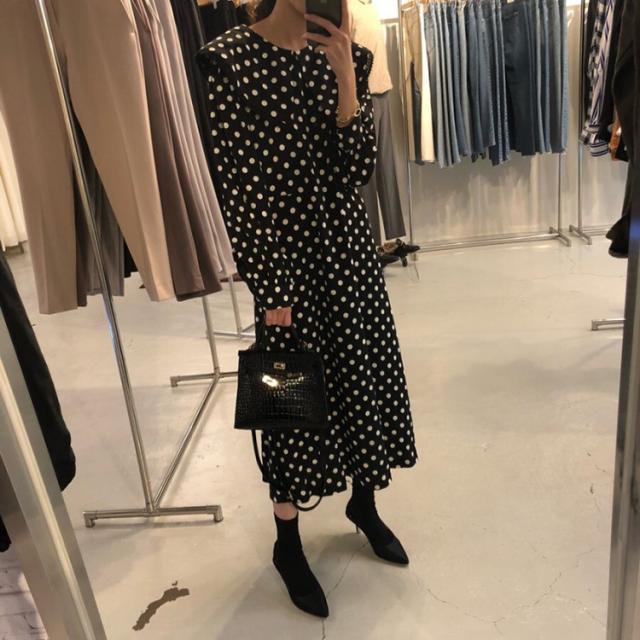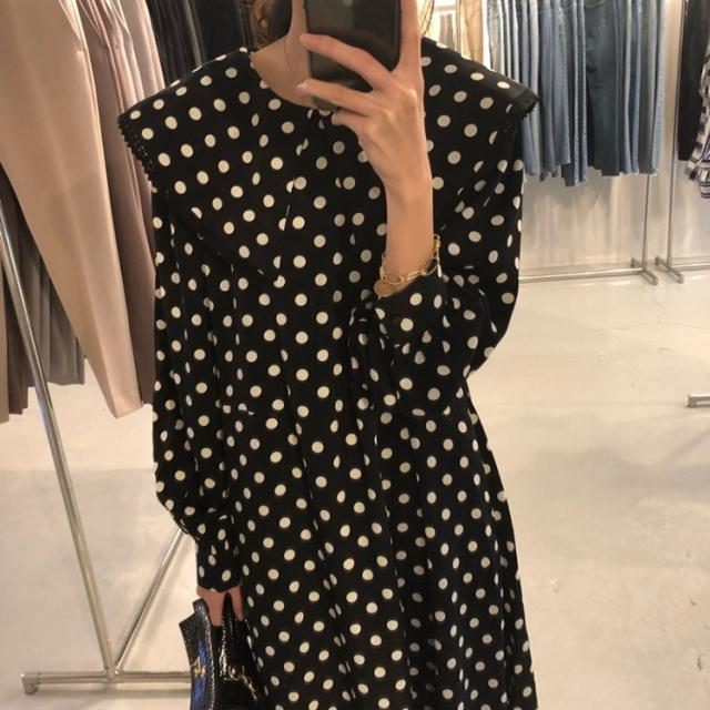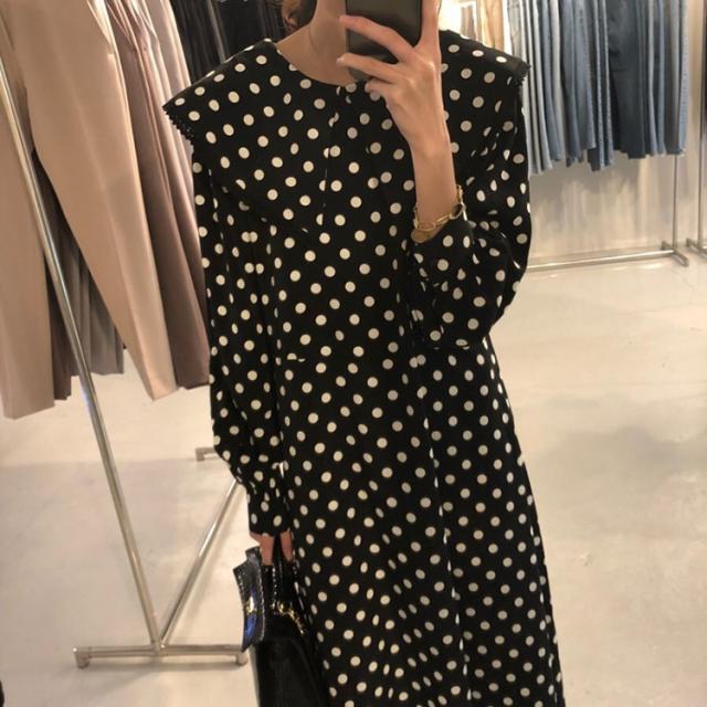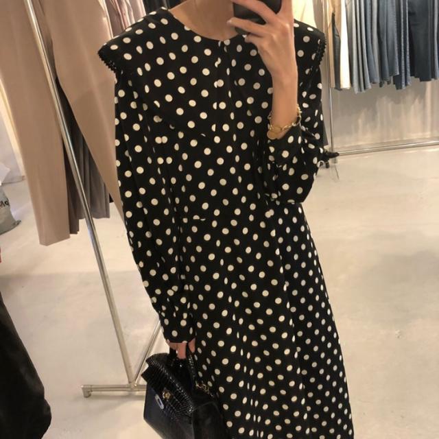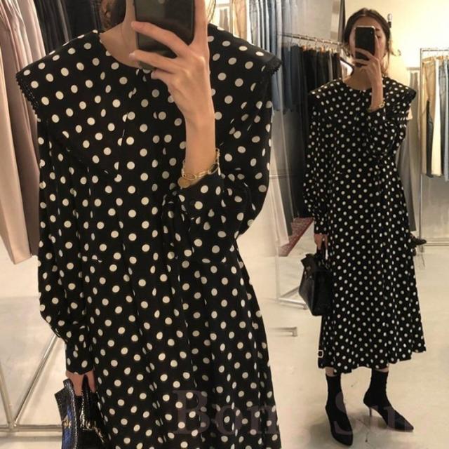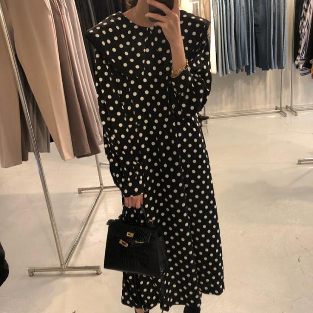 ワンピース レディース 40代 マキシワンピース 秋冬新作 長袖ワンピース きれいめ ドット柄ワンピース黒レース ロングスカート 韓国風 オシャレ ゆったり 大人