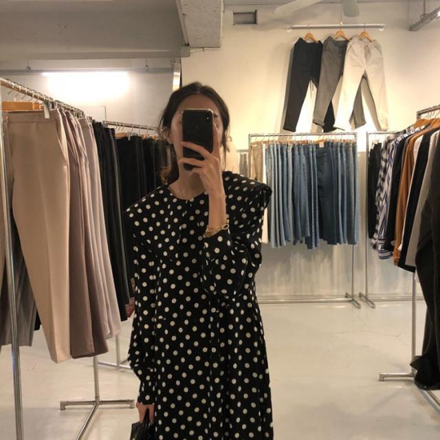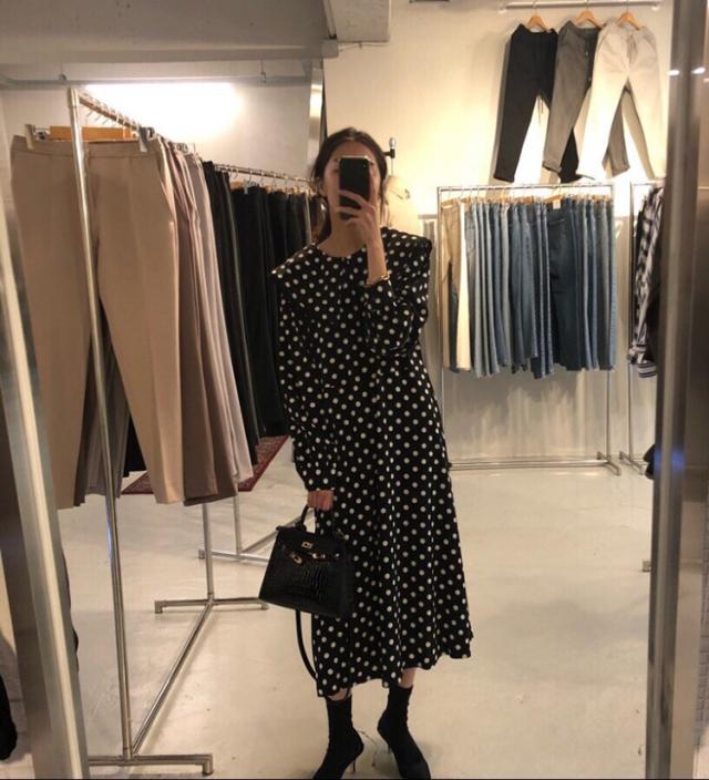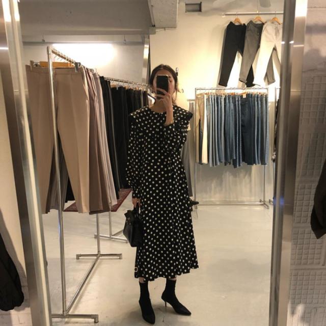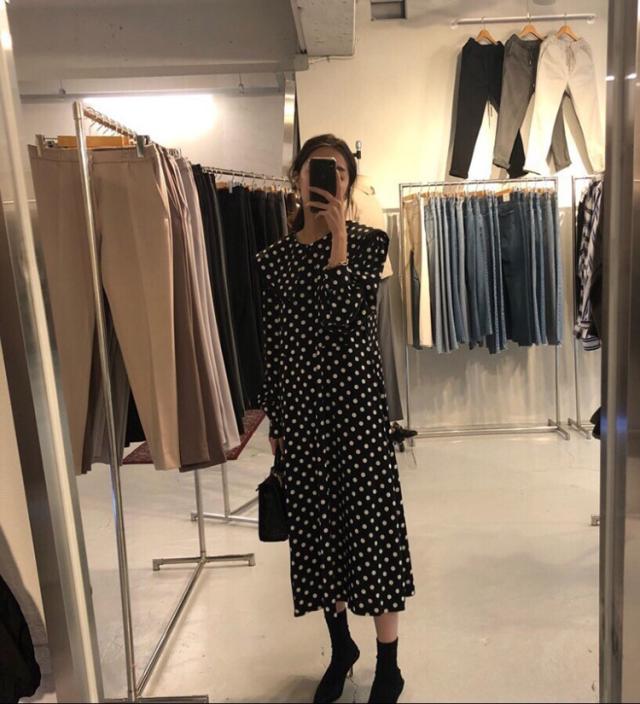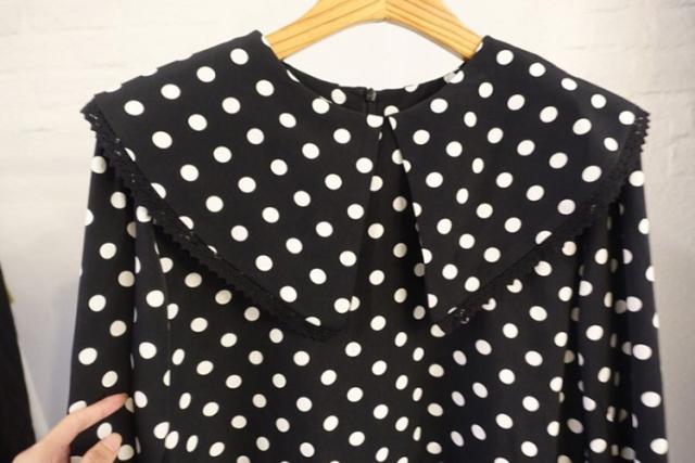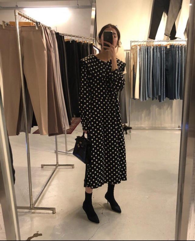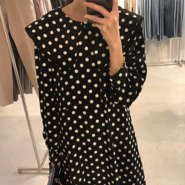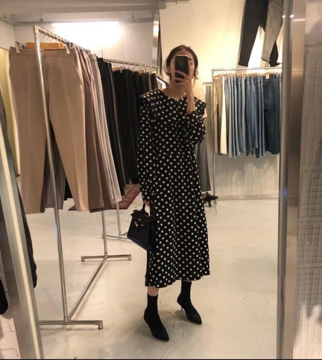 ワンピース レディース 40代 マキシワンピース 秋冬新作 長袖ワンピース きれいめ ドット柄ワンピース黒レース ロングスカート 韓国風 オシャレ ゆったり 大人