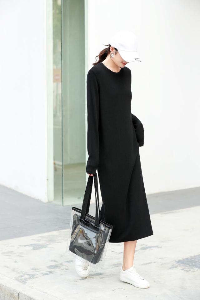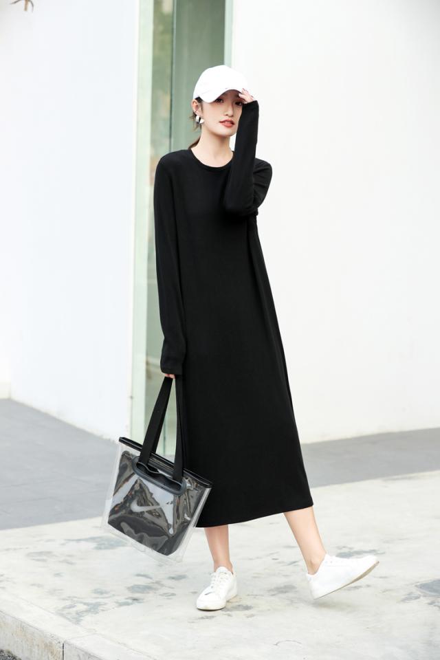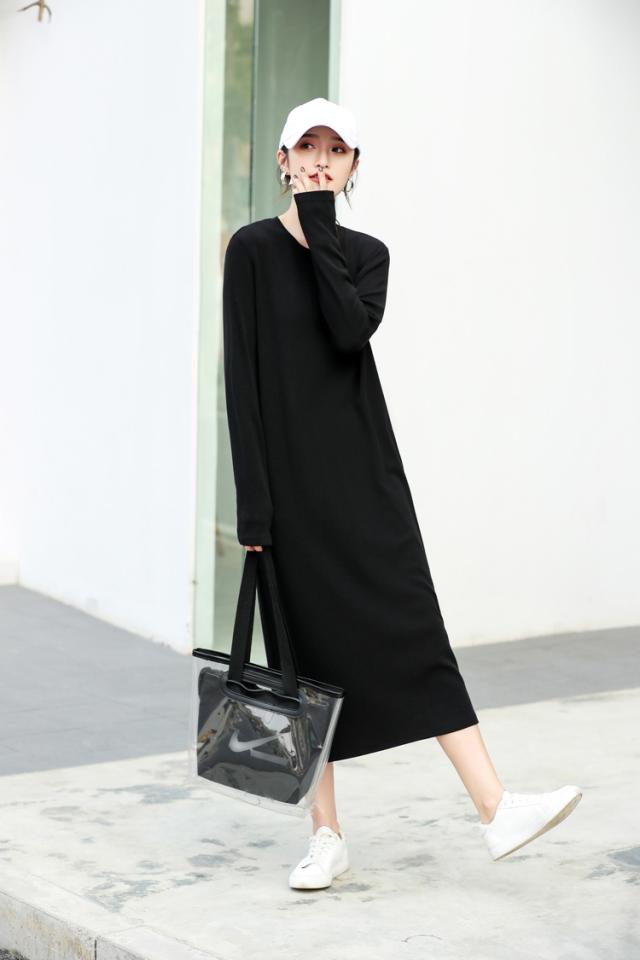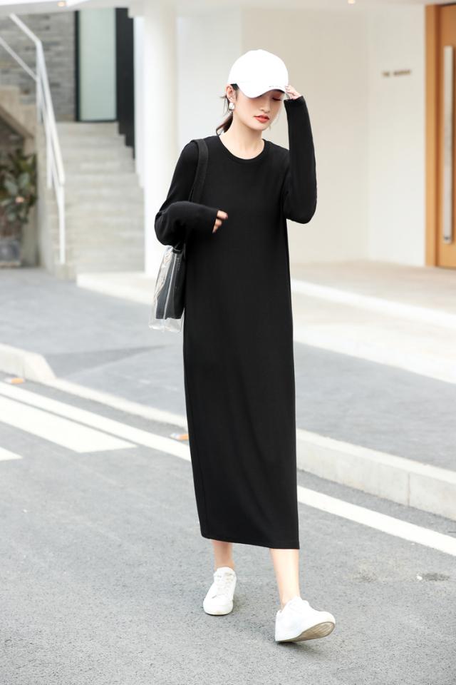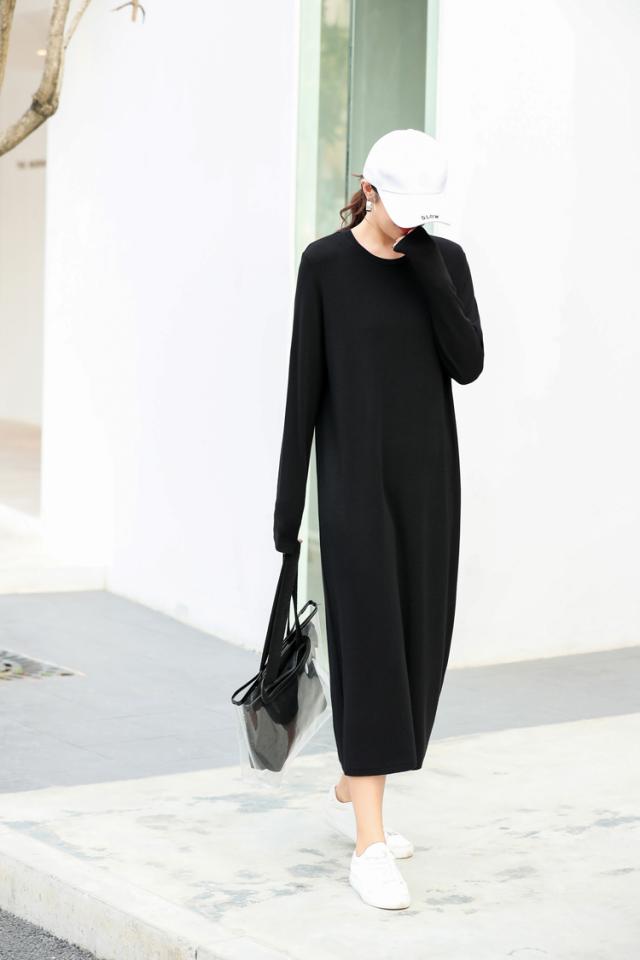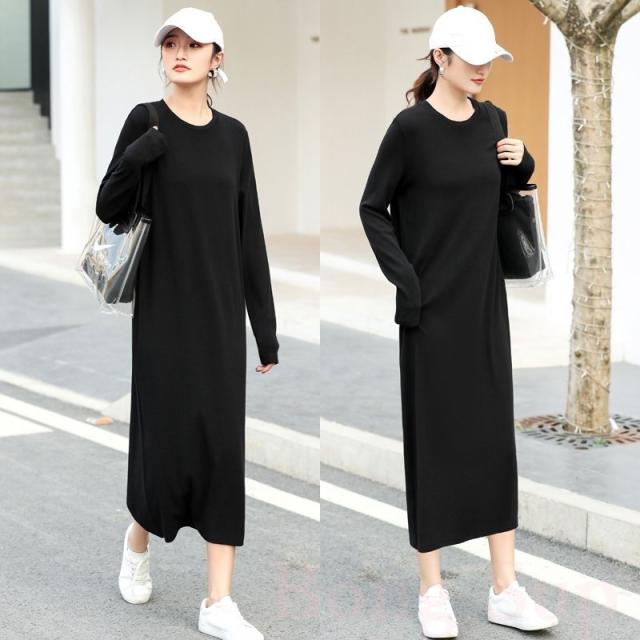 マキシワンピース レディース 秋冬 長袖 スウェットワンピース 黒タイトスカート ひざ下ワンピース インナー ゆったり 大きいサイズ オシャレ 大人 体型カバー