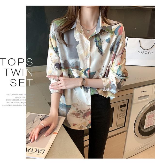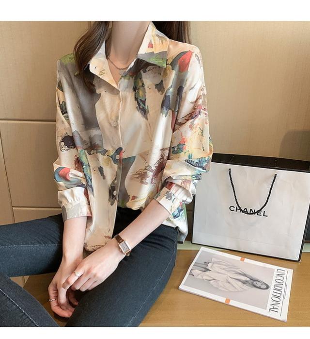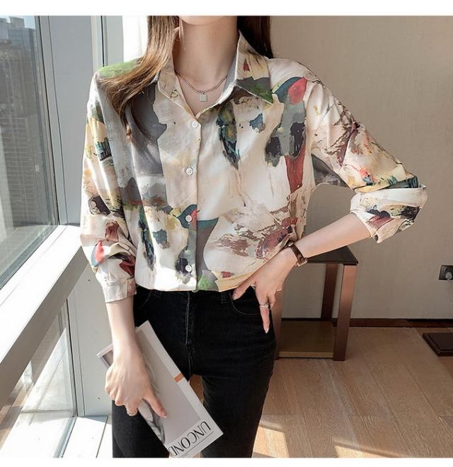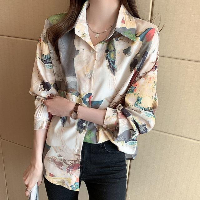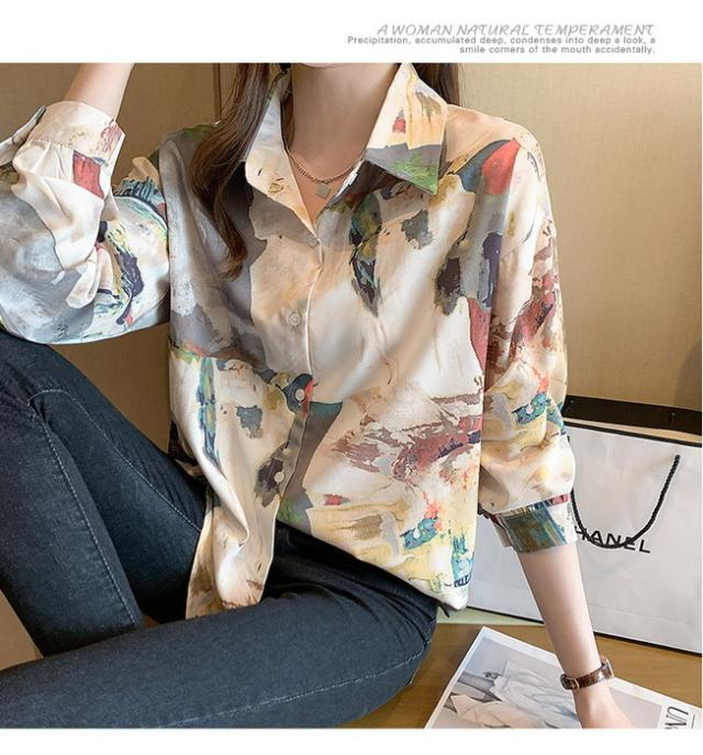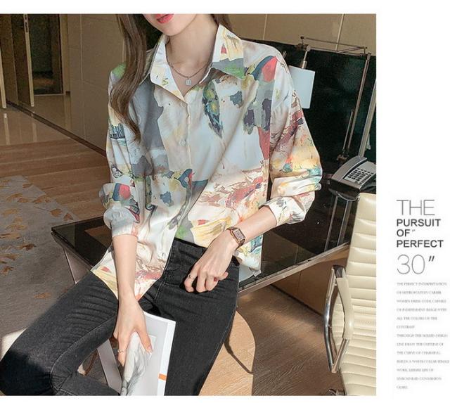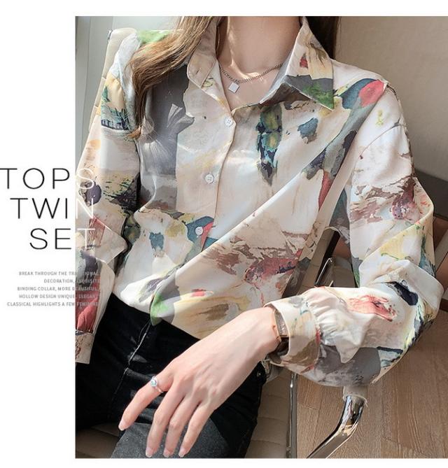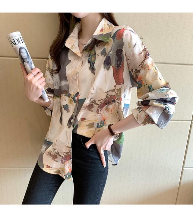 ブラウス レディース 40代 春秋 オシャレブラウス シフォンシャツ プリントブラウス カジュアル 長袖トップス おしゃれ 大人 通勤OL ゆったりシャツ30代 新作