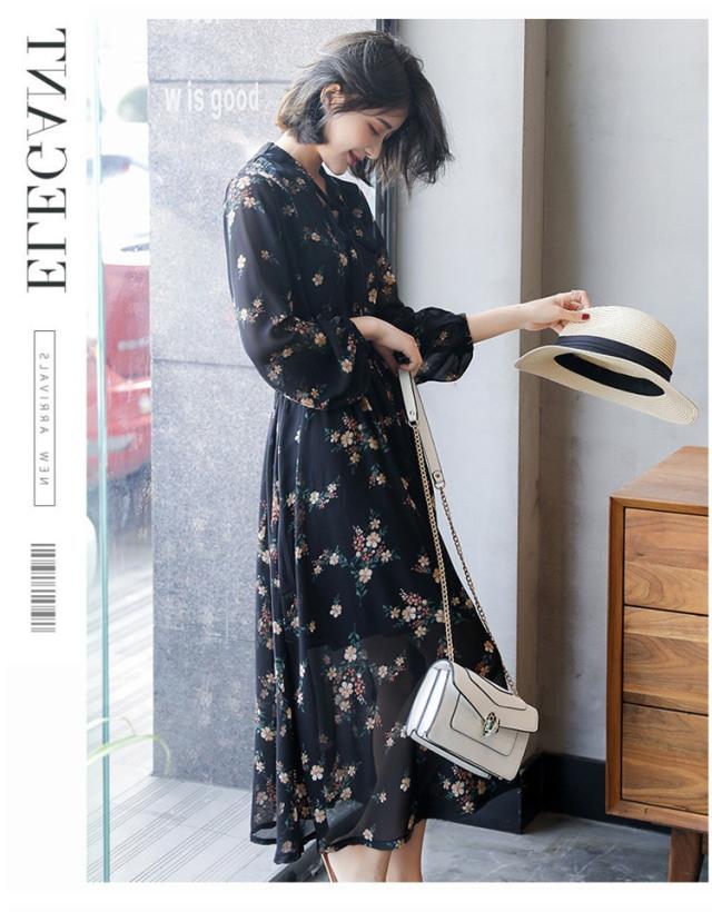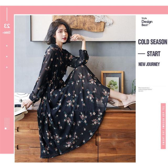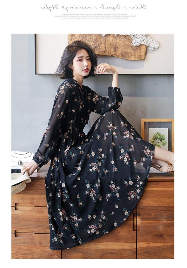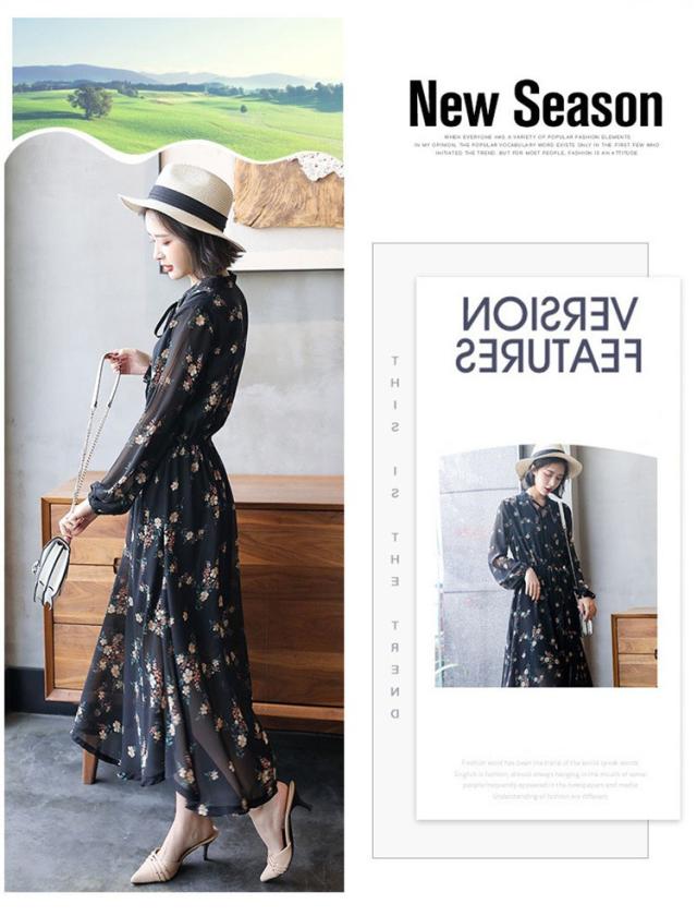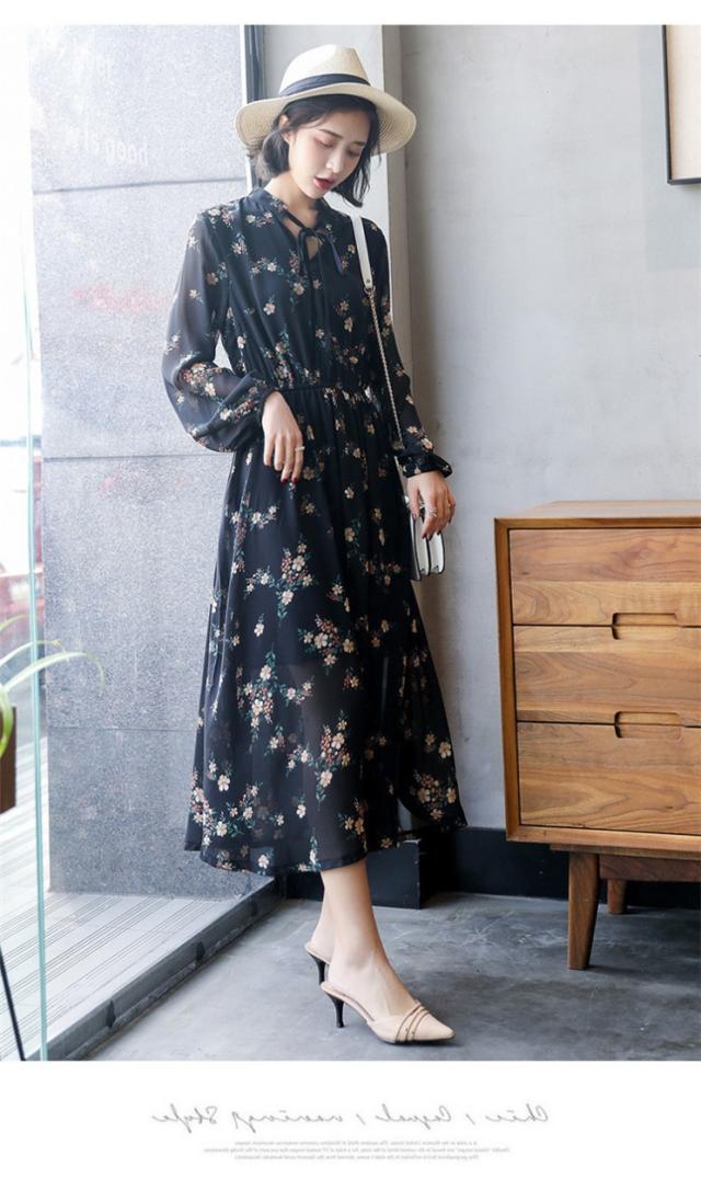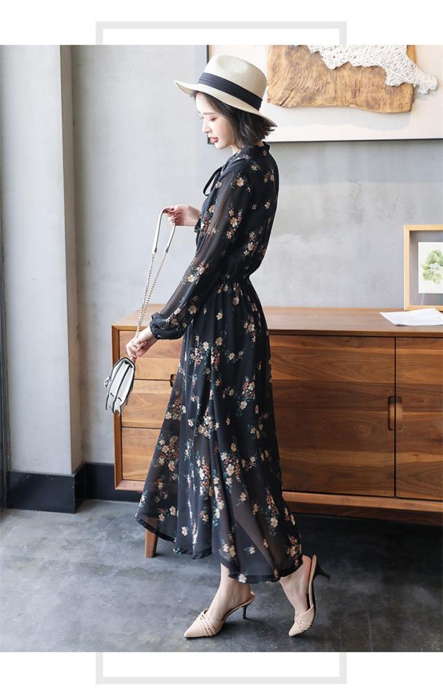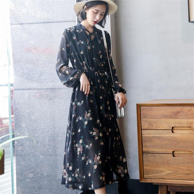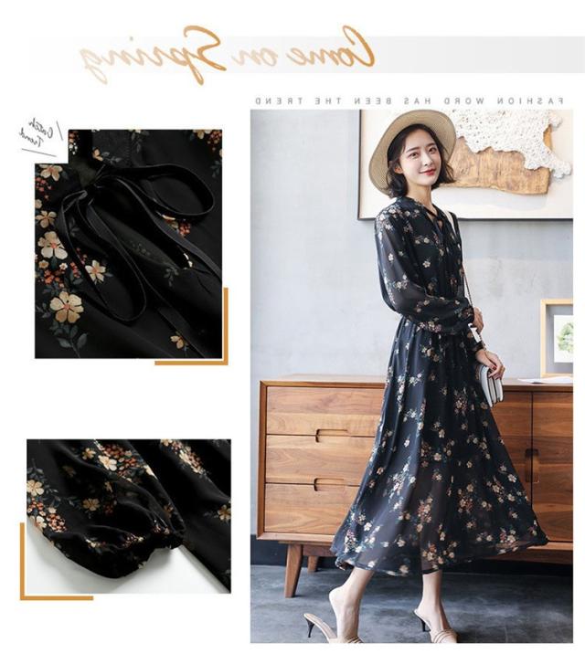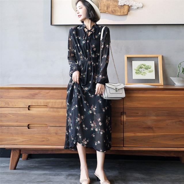 ワンピース レディース 40代 ワンピース 花柄 リボンネック 秋 きれいめ マキシワンピース 上品 リネン 長袖 着痩せ 通勤 旅行ドレス お出かけ 大人韓国風
