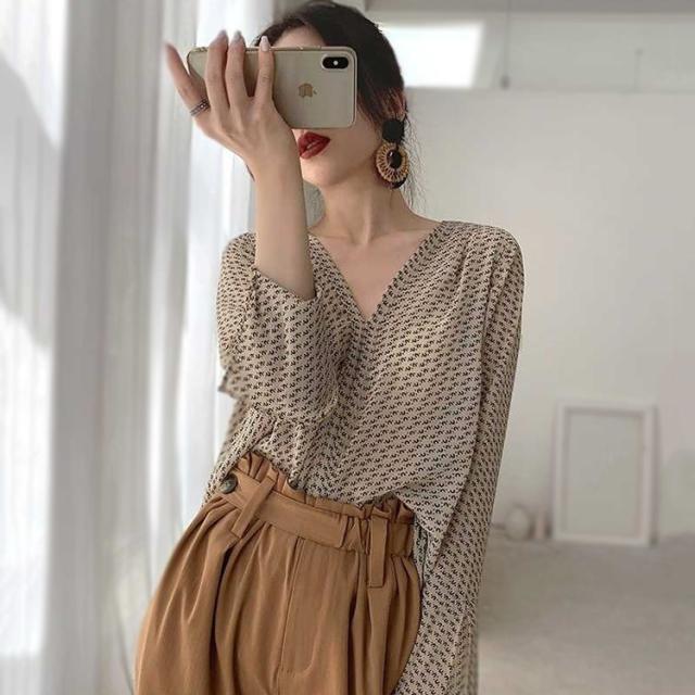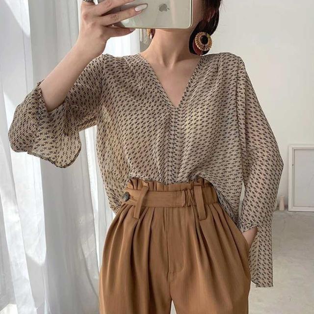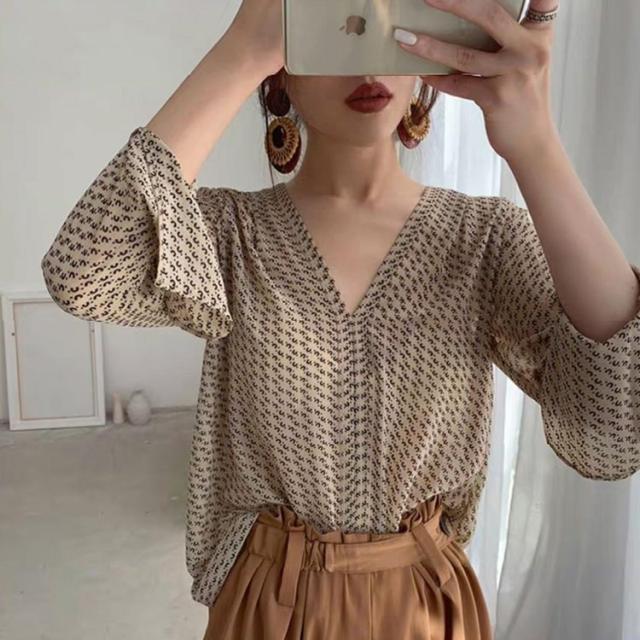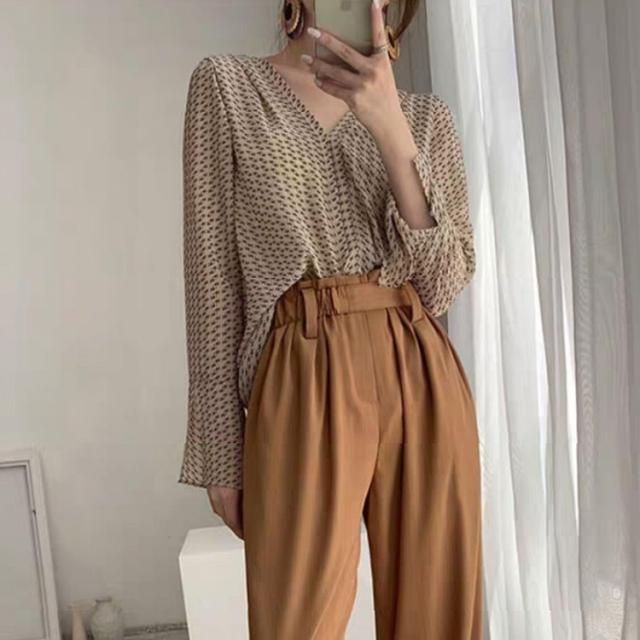 ブラウス レディース きれいめ 春夏 40代 シフォン ブラウス 薄い 長袖 フレア 韓国風 ゆったり カジュアル Vネック おしゃれ 通勤 ブラウス