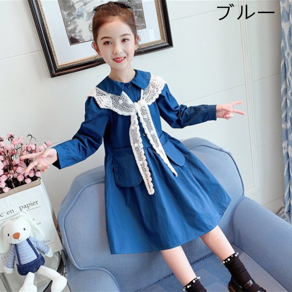 ワンピース カジュアル 姫系 可愛い 女の子 入学式 卒業式 入園式 発表会 韓国子供服 キッズ ワンピース ラペル 長袖 膝丈 無地 通学 旅行 オシャレ 春服 新作