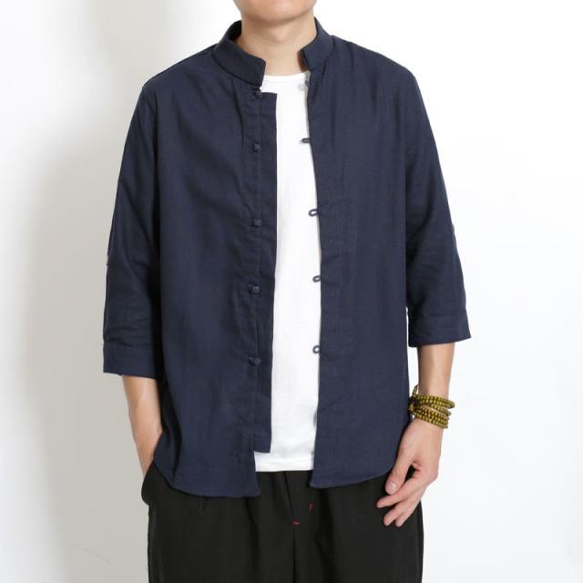 綿麻Tシャツ 涼しい メンズ 中国風tシャツ 斜めチャイナボタンtシャツ 民族風tシャツ イレギュラーtシャツ 半袖tシャツ