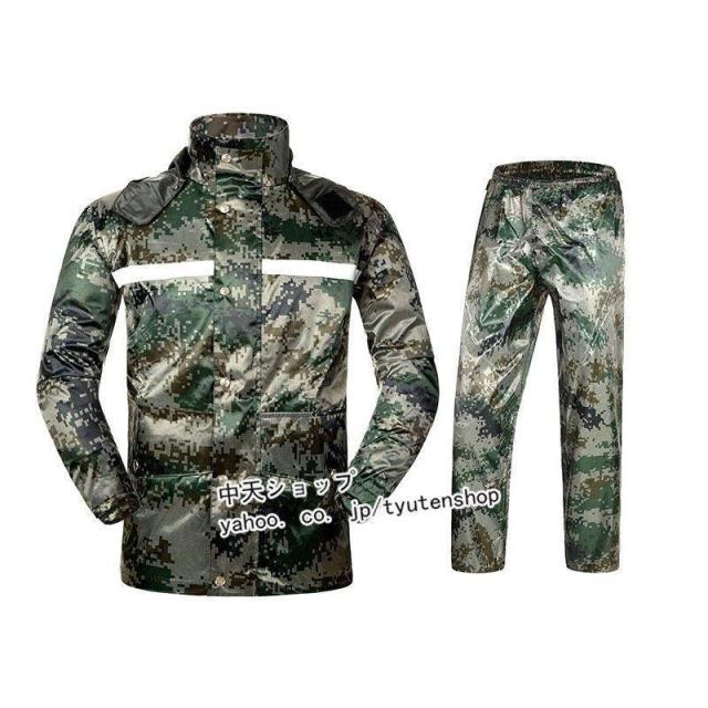 | サイズについての説明 | レインウェア/レインスーツ上下セット激安 安い 雨具 ユニセックスレインコート レジャー レインウェア 合羽 カッパ レインウエア 雨具 自転車 アウトドア はっ水 自転車男女兼用 作業用 自転車用 帽子 フード 梅雨 雨具【カラー】迷彩(ご参考程度)モデル着用画像では若干色味が異なる場合がございますので、下記のカラー画像をご参考になさって下さい。【セット内容】:コート+パンツのみ【サイズ】ボトムスM: 着丈70cm バスト110cm 肩幅44cm 袖丈54cmL: 着丈74cm バスト115cm 肩幅46cm 袖丈56cmXL: 着丈76cm バスト120cm 肩幅48cm 袖丈58cmXXL: 着丈78cm バスト125cm 肩幅50cm 袖丈60cmXXXL: 着丈80cm バスト130cm 肩幅52cm 袖丈62cmトップスM: 着丈95cm ヒップ106m ウエスト54-88cmL: 着丈97cm ヒップ100cm ウエスト58-96cmXL: 着丈99cm ヒップ114cm ウエスト62-108cmXXL: 着丈101cm ヒップ118cm ウエスト66-110cmXXXL: 着丈103cm ヒップ122cm ウエスト70-112cm |