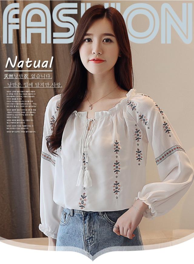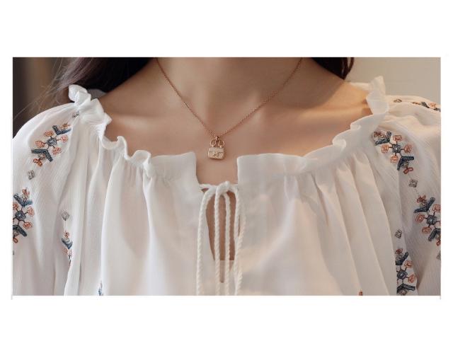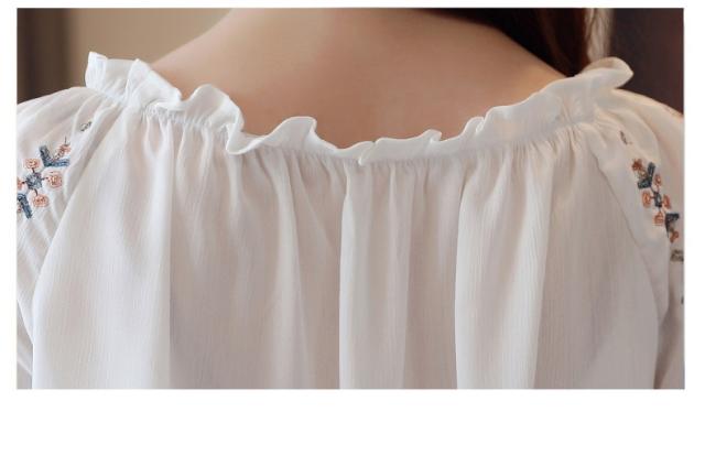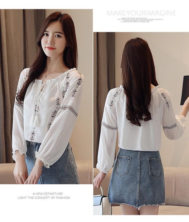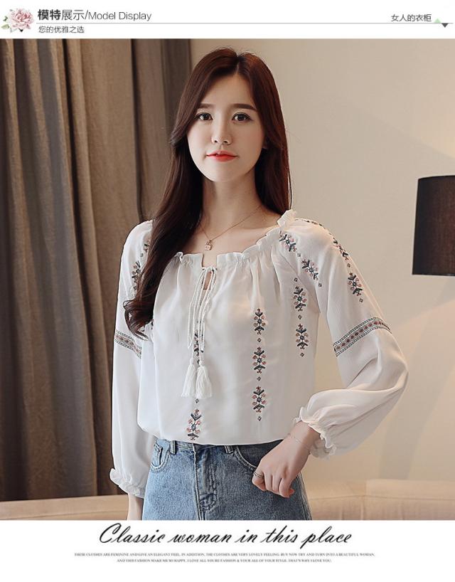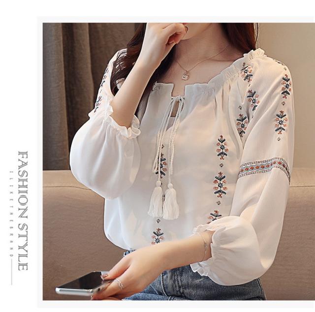 ブラウス レディース きれいめ 40代 春夏秋新作 オシャレブラウス 花刺繍白シフォンシャツ 長袖トップス パフスリーブブラウス 大人 通勤 ゆったり シャツ30代