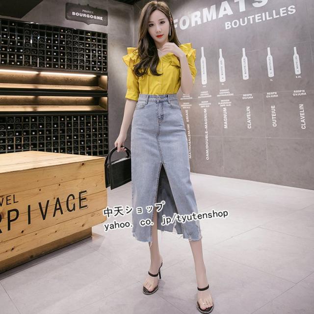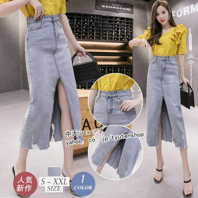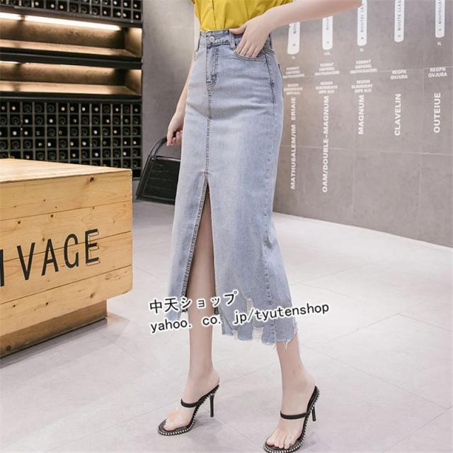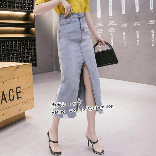 デニムスカート タイトスデニムカート ハイウエストデニムスカート スリットデニムスカート ペンシルスカート デニムスカート ミモレ丈 レディース 春秋通勤