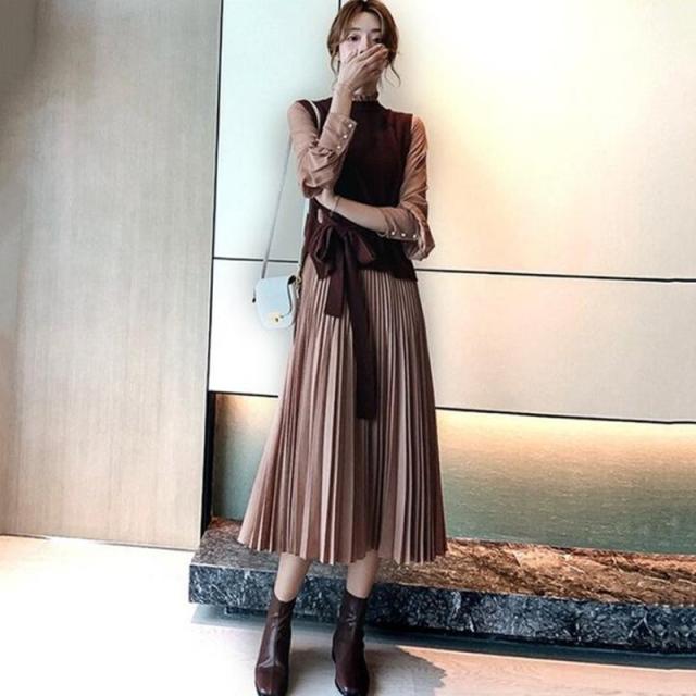セットアップ レディース 秋冬 40代 30代 カジュアル 長袖 2点セット ニット 膝丈スカート レース 大きいサイズ おしゃれ 上品 着痩せ 通勤 韓国風 新品