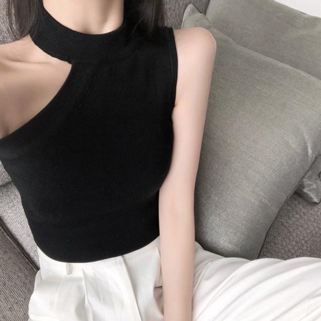 夏新作 ホルターネック ノースリーブ トップス 上着 タンクトップ サマーニット 無地 大人/学生 キャミトップス カジュアル 通勤 通学