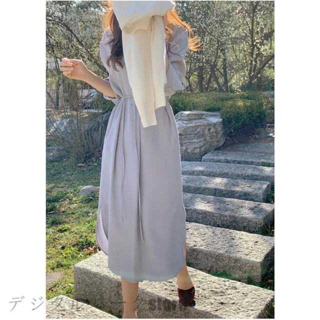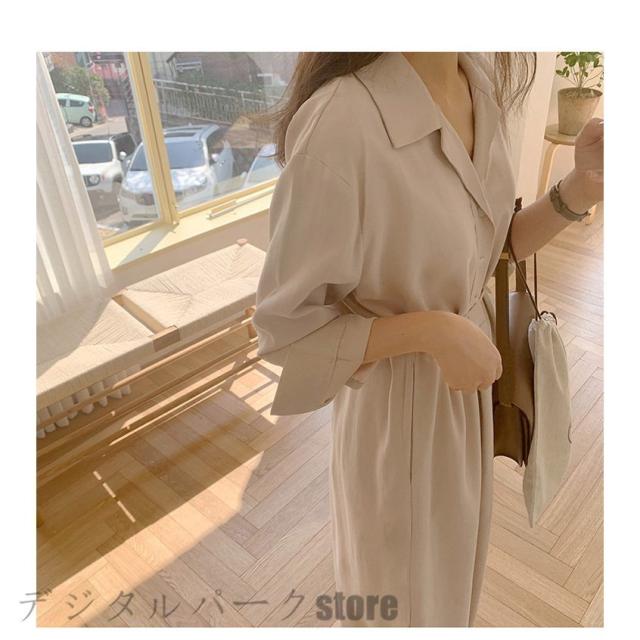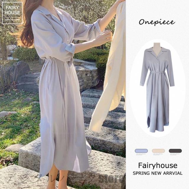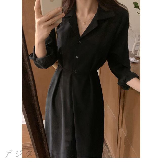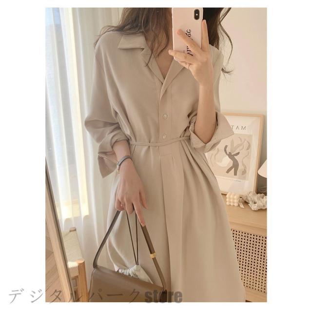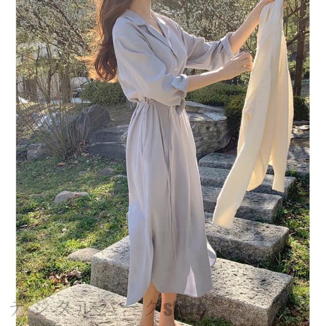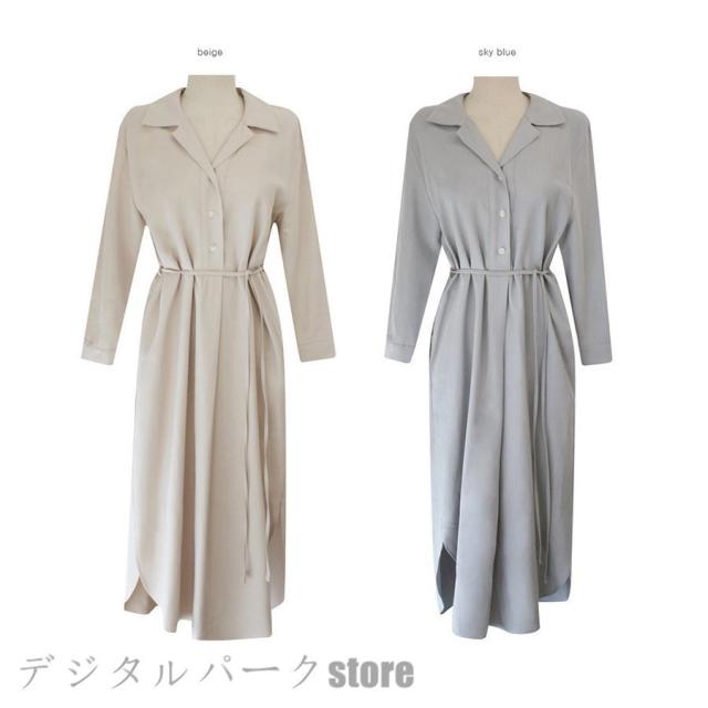 シャツワンピース レディース 40代 マキシワンピース 春夏秋 長袖ワンピース きれいめ vネック ロング丈シャツスカート オシャレ結婚式ドレス お出かけ 大人