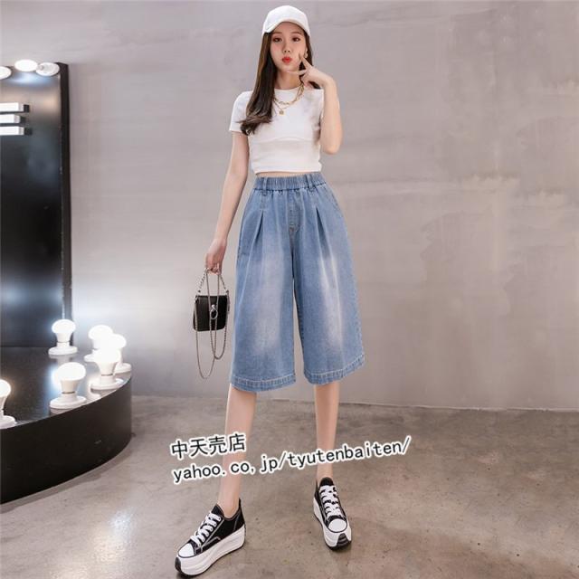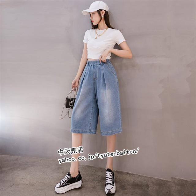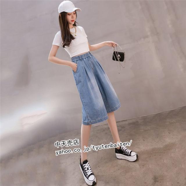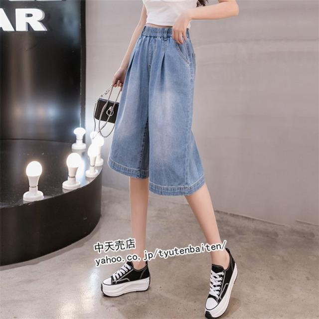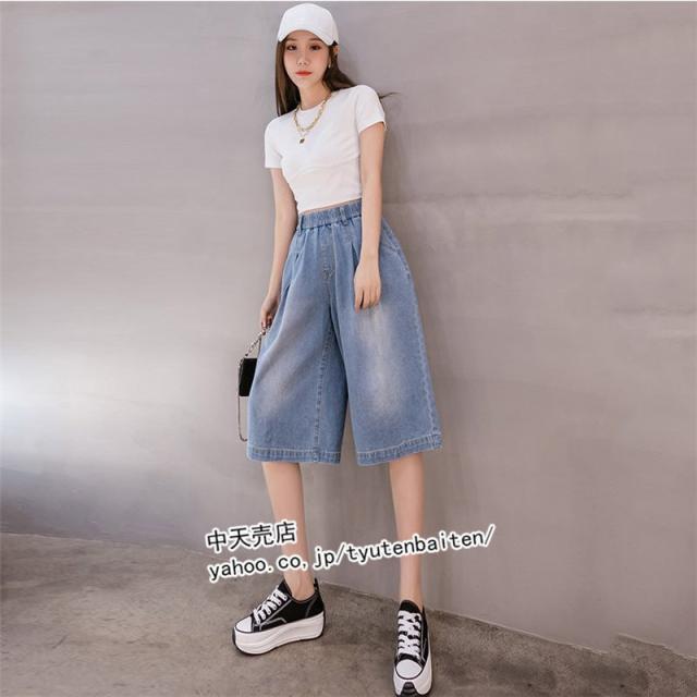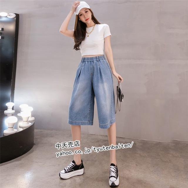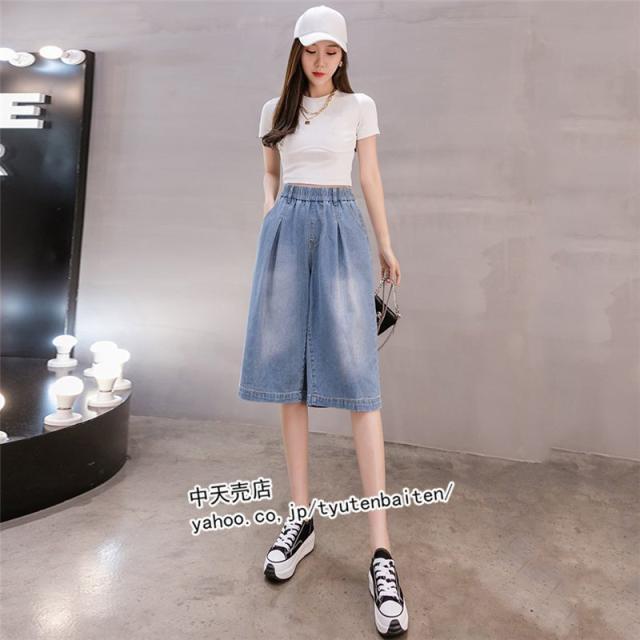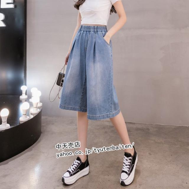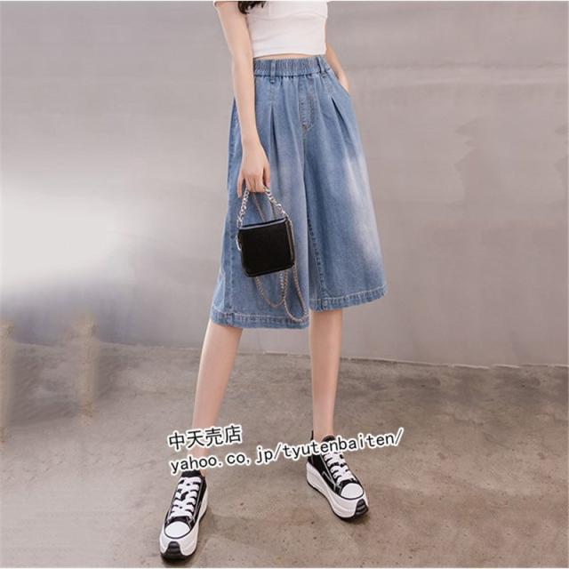 デニムショートパンツ ガウチョパンツ ハイウエストデニムショートパンツ ファッション レディースデニムショートパンツ カジュアル 5分丈 通学 通勤 春夏新作