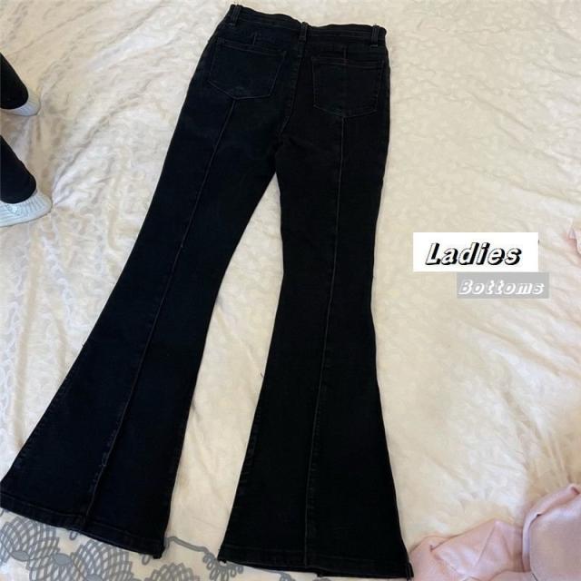 ボトムス レディース ロングパンツ パンタロン ブーツカット ハイウエスト 長ズボン ストレッチ 楽ちん ブラック カジュアル 普段着 春 秋 女性