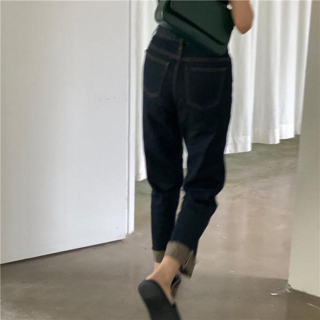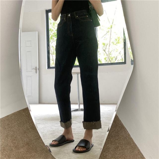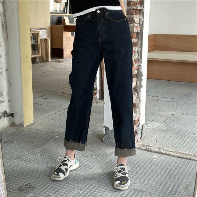 デニムパンツ ジーンズ レディース ボトムス ストレート ロング丈 長ズボン カットオフ カジュアル ラフ おしゃれ かっこいい
