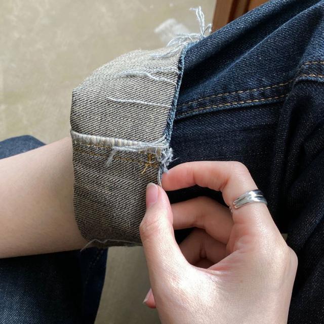 | サイズについての説明 | ストレートシルエットのデニムパンツ。切りっぱなしデザインがアクセントになっています。トップスとの組み合わせも色々と楽しめそうですね。【サイズについて】画像をご参照ください |