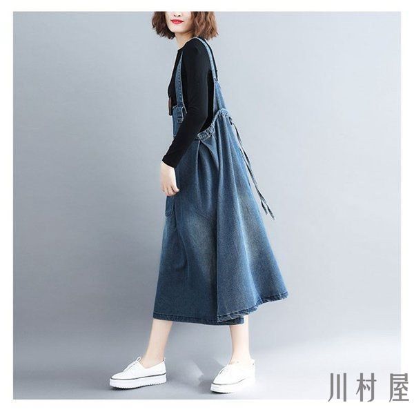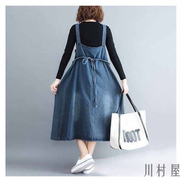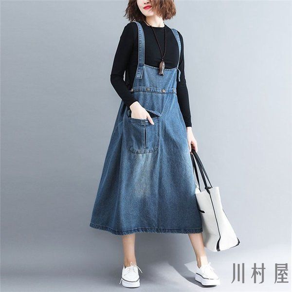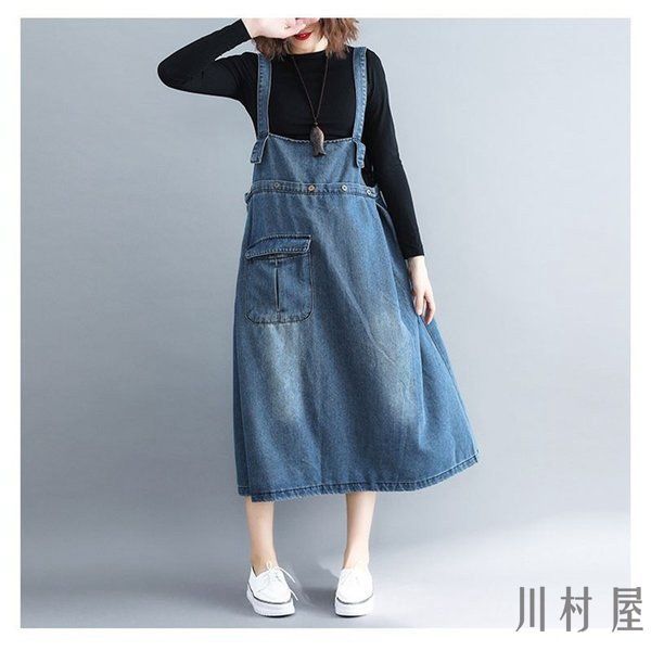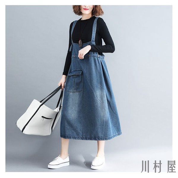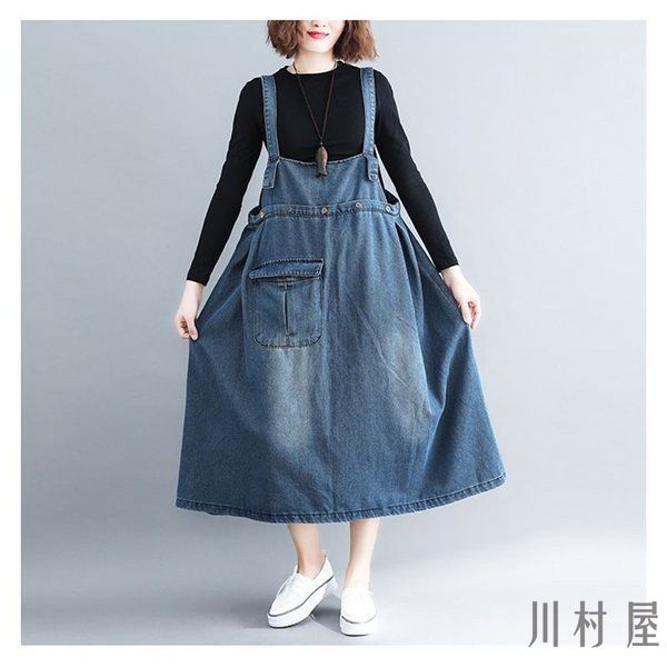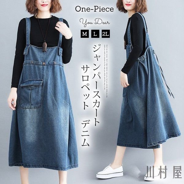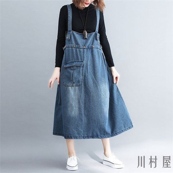 ジャンパースカート サロペット デニム レディース 40代 ワンピース デニムワンピース ロング ゆったり 体型カバー オールインワン 大きいサイズ