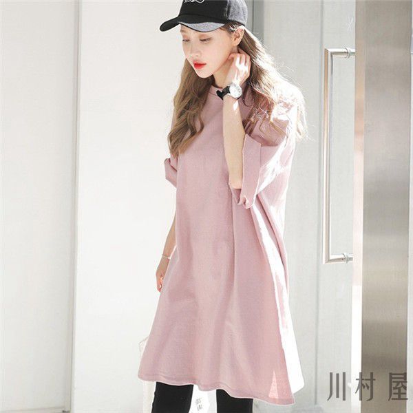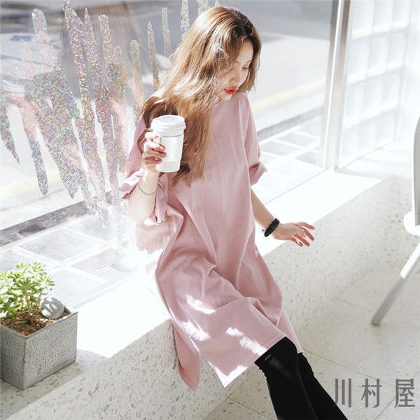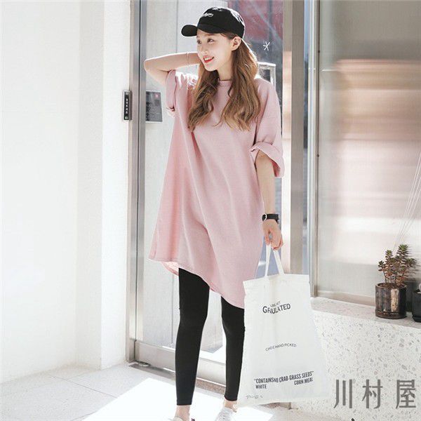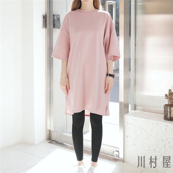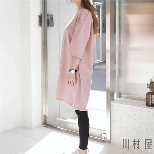 ゆったり Tシャツ レディース ロング 丸首 無地 インナー カジュアル ロンT ワンピース シンプル 良質素材 かわいい 速乾 部屋着