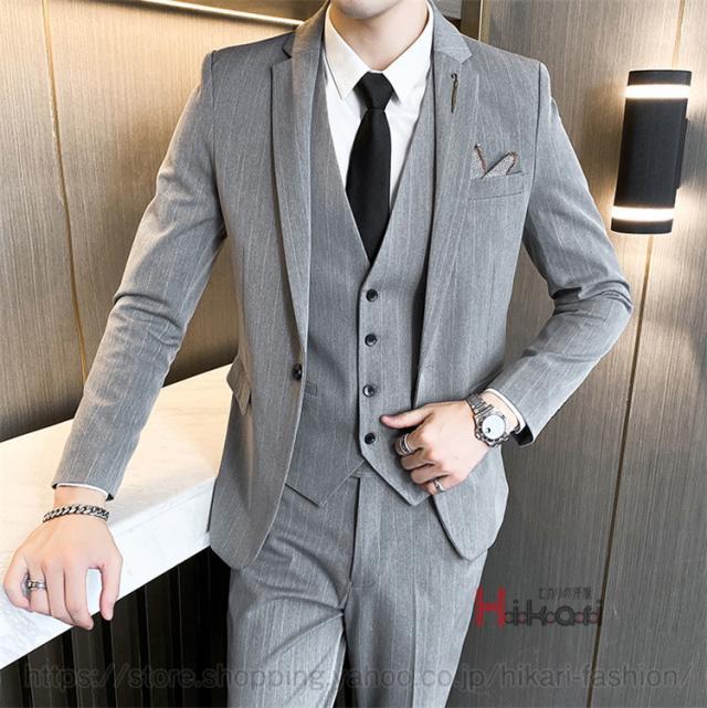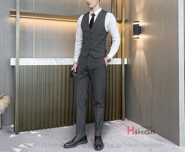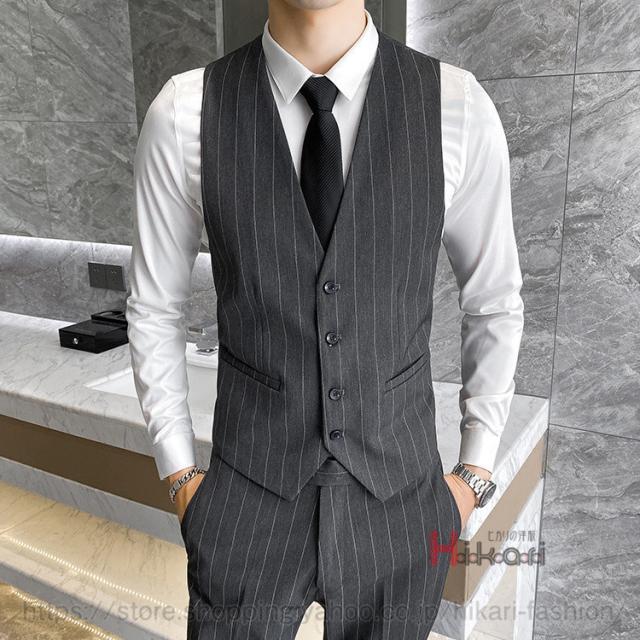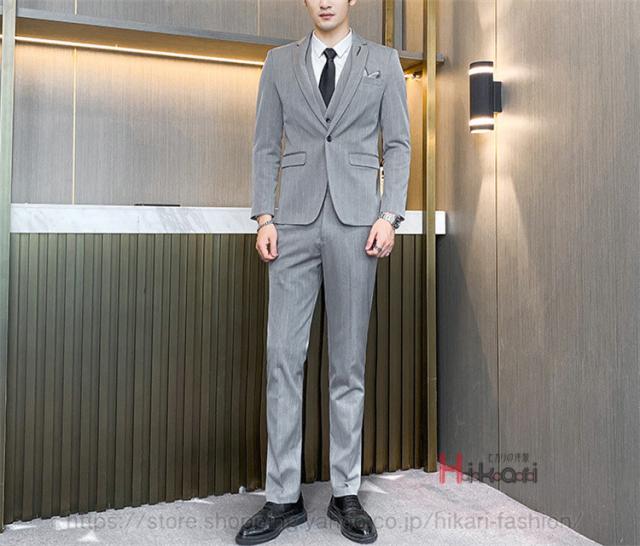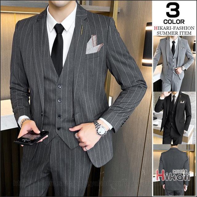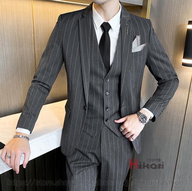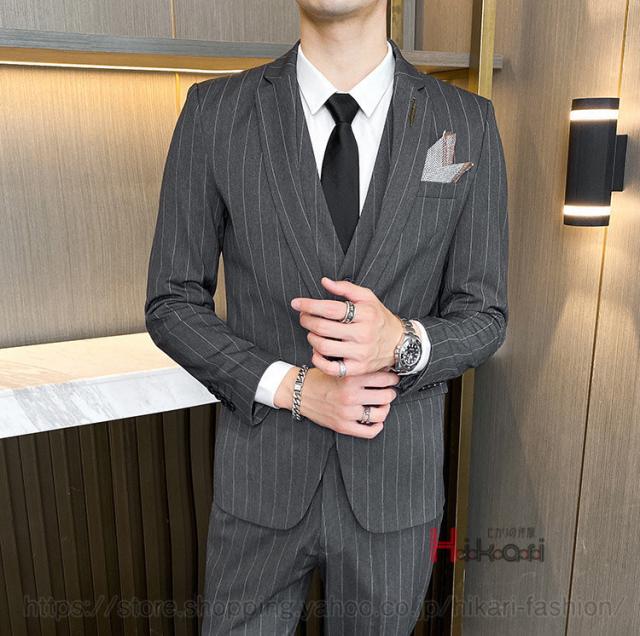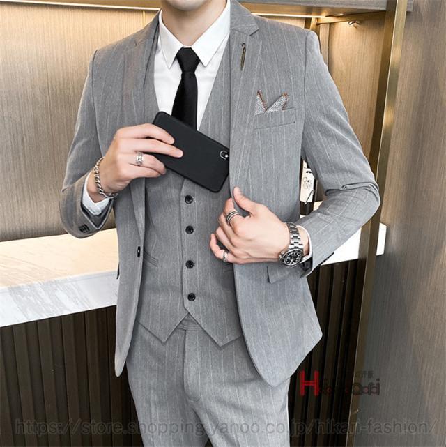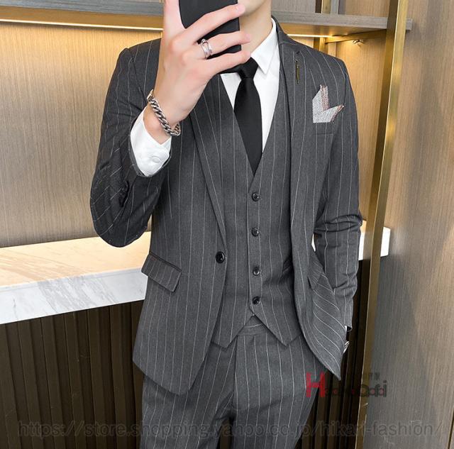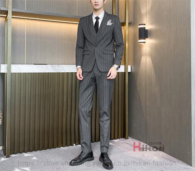 スーツ メンズ スリーピーススーツ ビジネススーツ ストライプ柄 上下セット 紳士服 カジュアルスーツ フォーマル 新生活