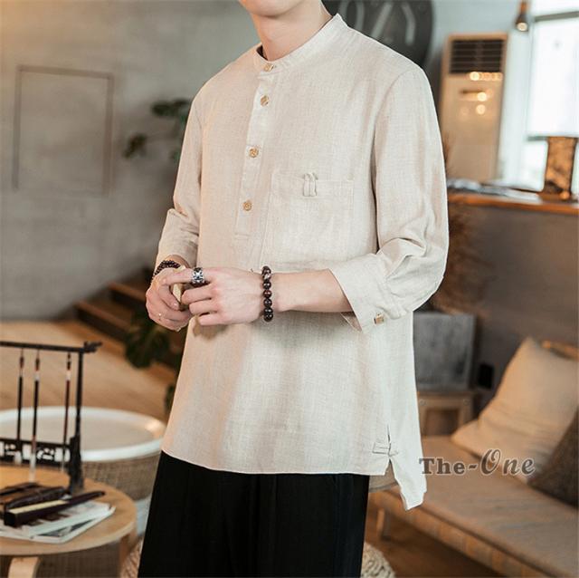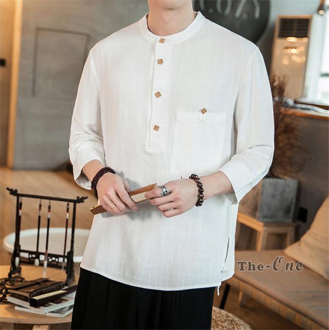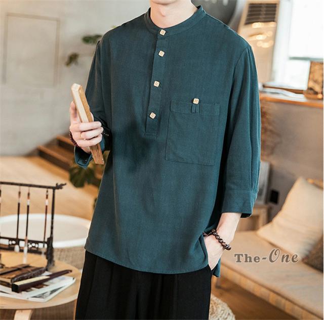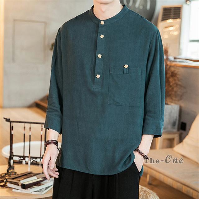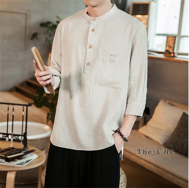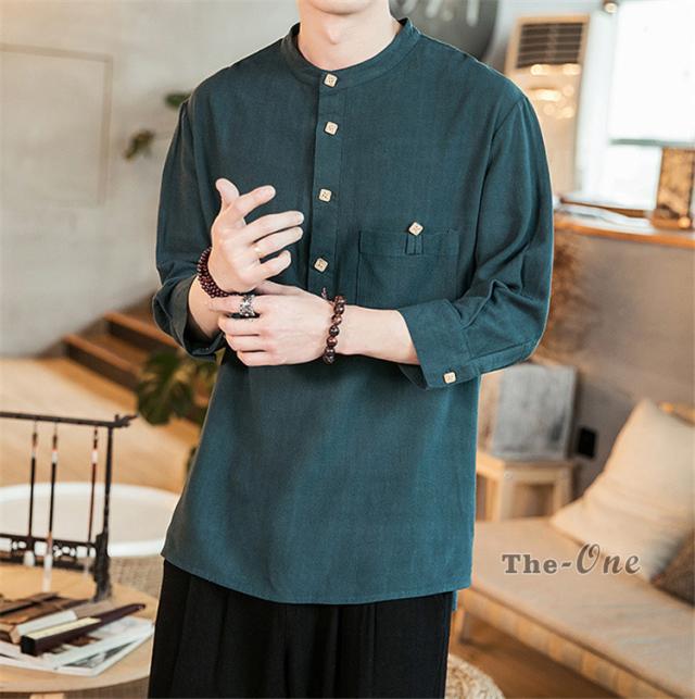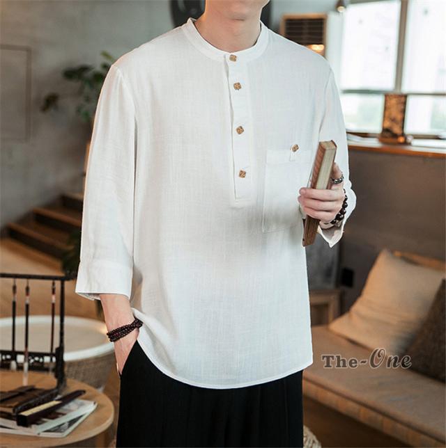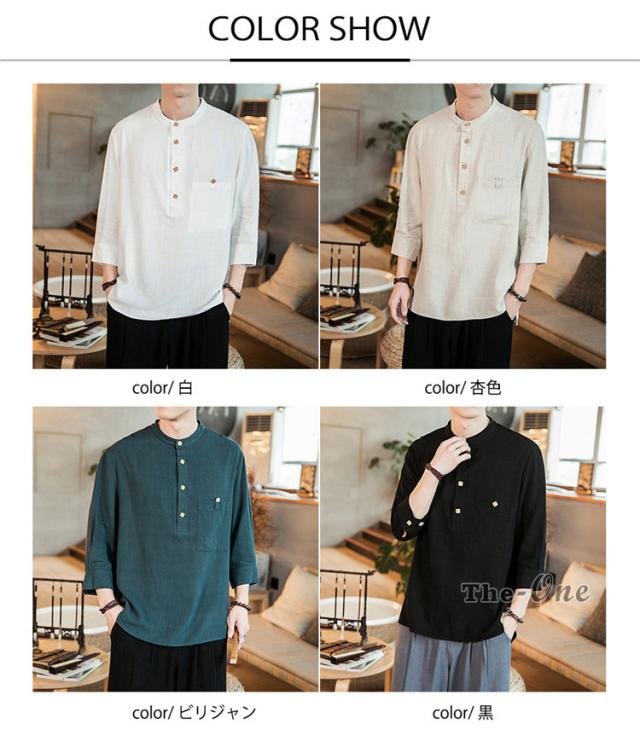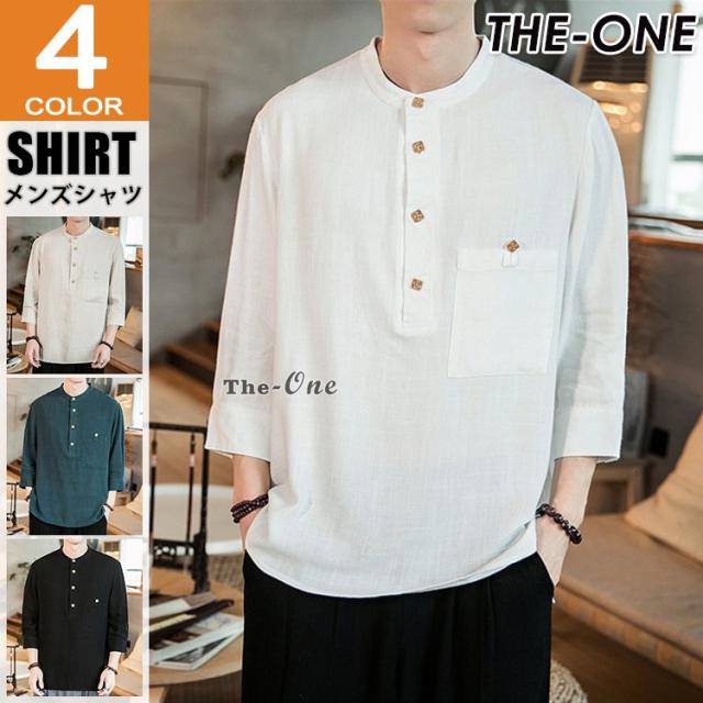 シャツ メンズ 七分袖シャツ チャイナ服 中華風 7分袖 立襟 ヘンリーネック 無地 カジュアル 夏