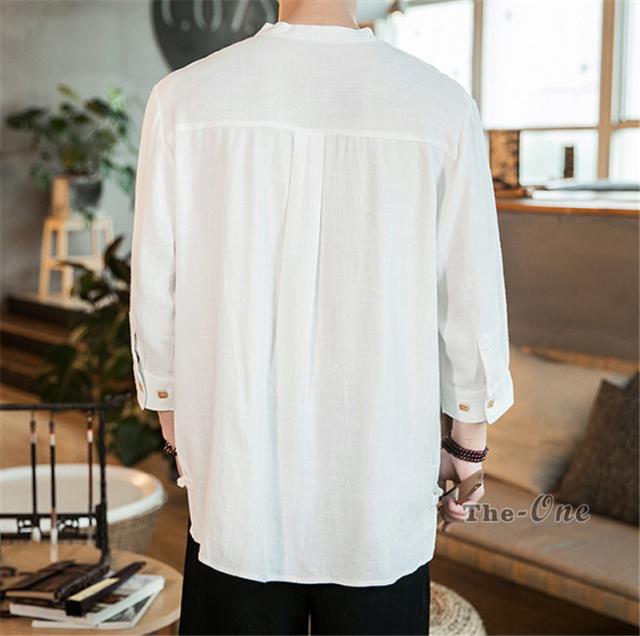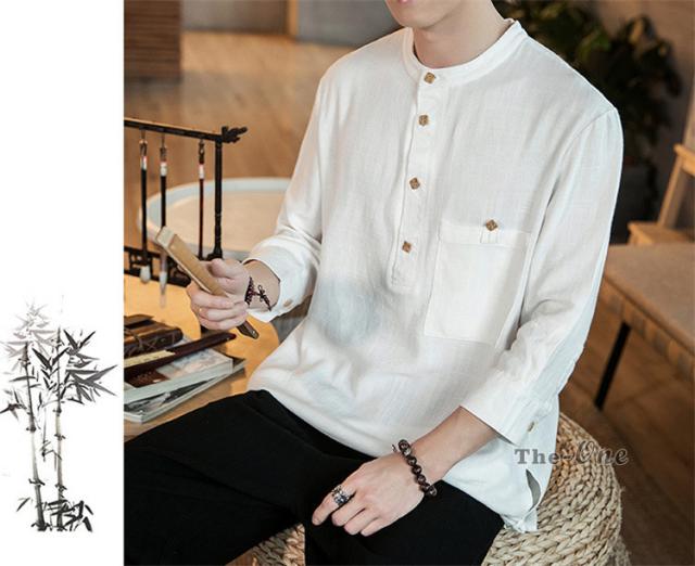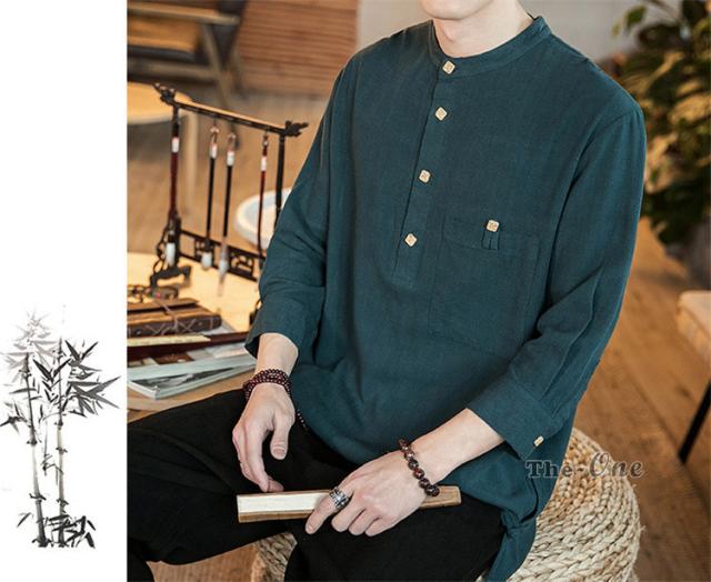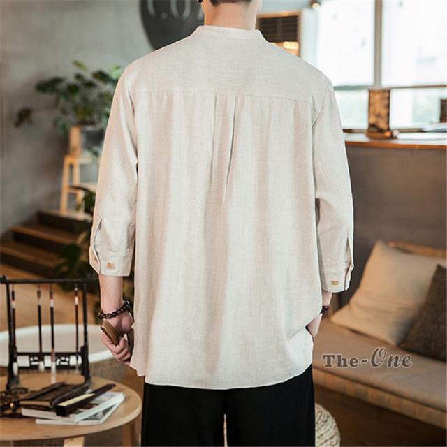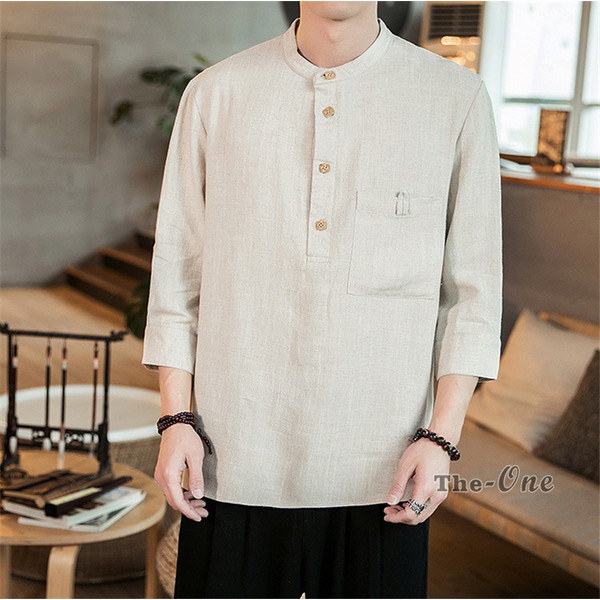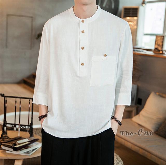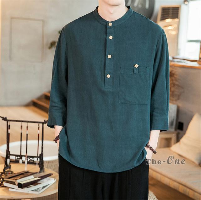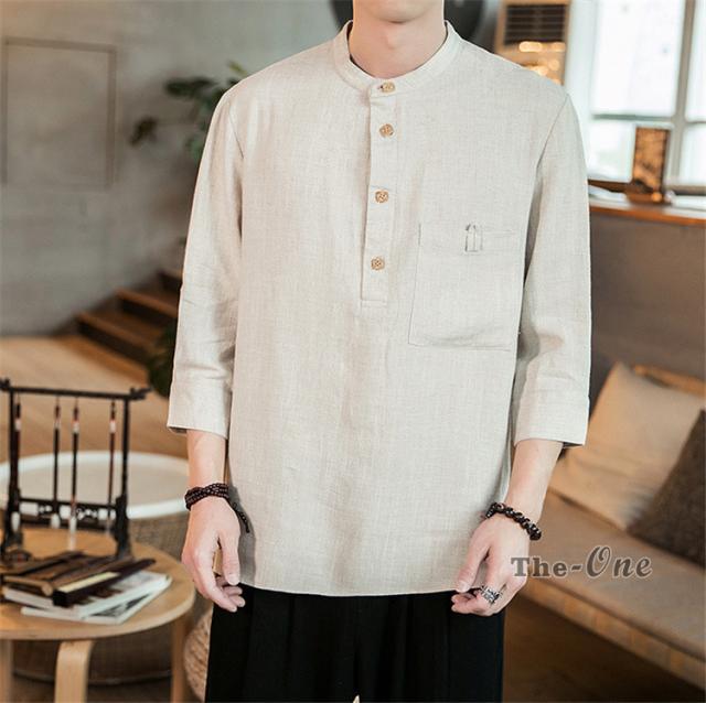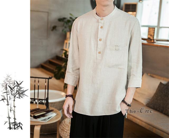 シャツ メンズ 七分袖シャツ チャイナ服 中華風 7分袖 立襟 ヘンリーネック 無地 カジュアル 夏