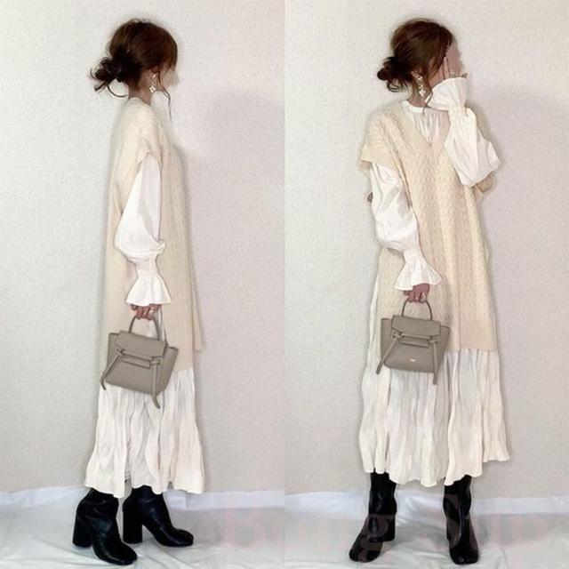 ワンピース レディース ワンピース キレイめ 膝丈ワンピース 長袖 シフォンワンピ 無地 ロング丈ワンピ オシャレ ワンピース 通勤 着痩せ