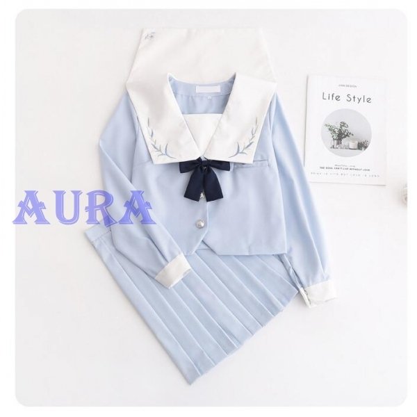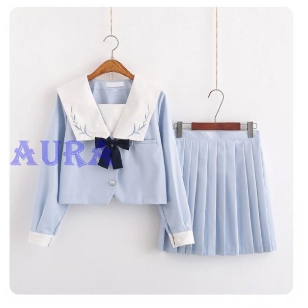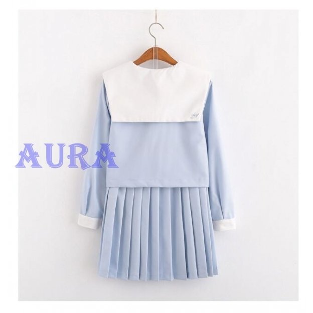 送料無料 セーラー服 制服 プリーツスカート 上下セット 長袖 半袖 学院風 学生服 フリルスカート ロング丈 コスプレ 女子 高校生 可愛い