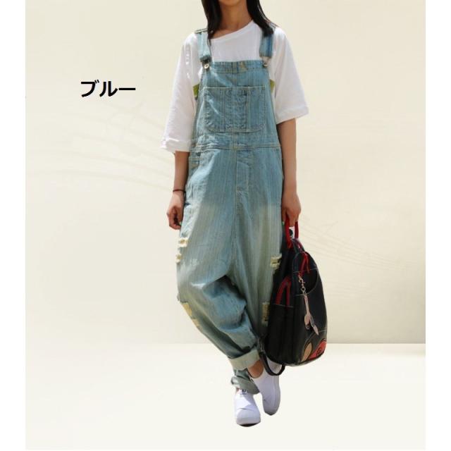 ダメージ デニムサロペット レディース オーバーオール デニム ジーンズ ジーパン ワイドパンツ ガウチョパンツ ボトムス 韓国風 かわいい 着痩せ 通勤/通学