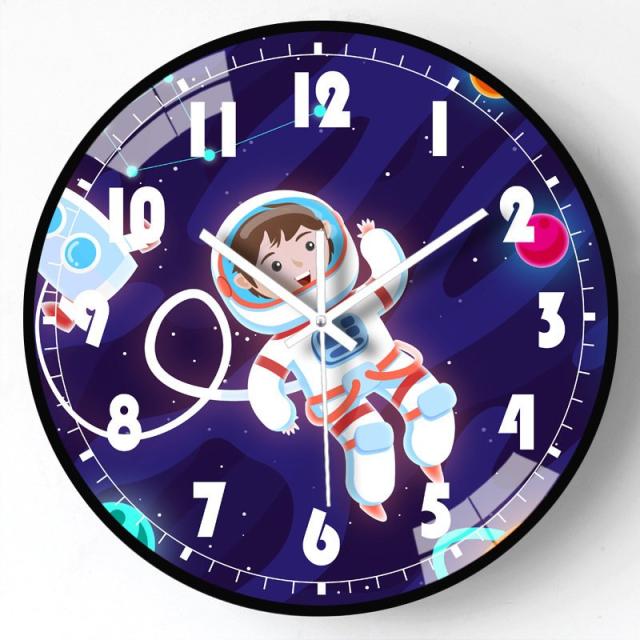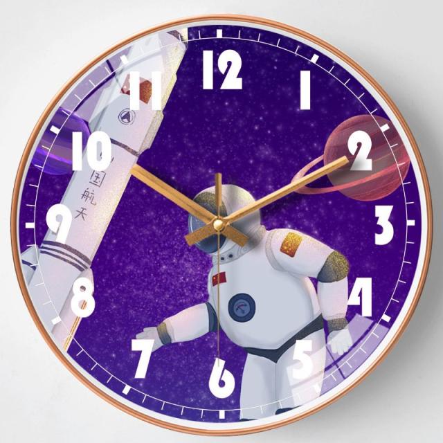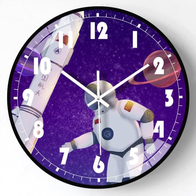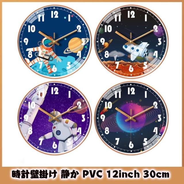 時計壁掛け 掛け時計 音がしない おしゃれ ウォールクロック 30cm 壁飾り 北欧 電池 静音 静か PVC 12inch 宇宙飛行士