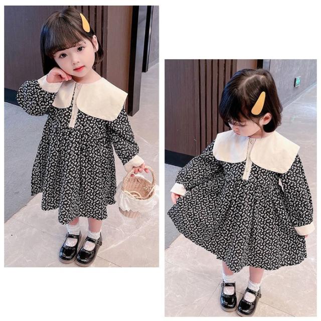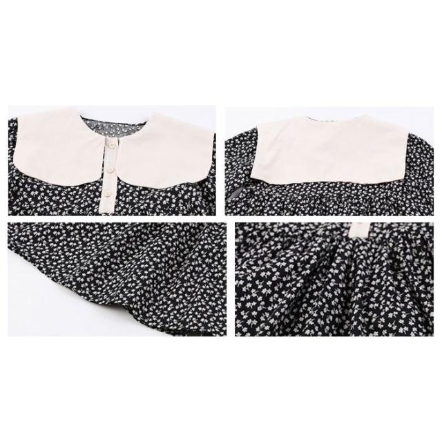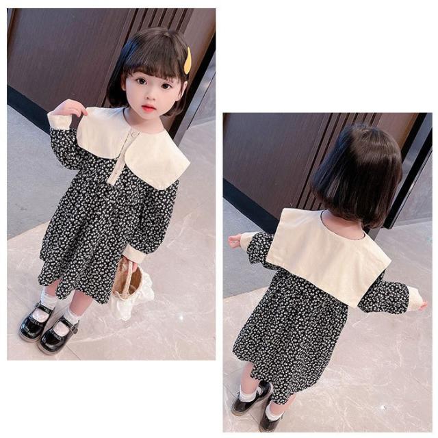 子供服 ワンピース ブラック 花柄 春 夏 秋 キッズ 幼児 ワンピ ワンピー 長袖 女の子 ベビー 花柄ワンピ 膝丈上 ポリエステル100% 姉妹 リゾート 可愛い 90-130