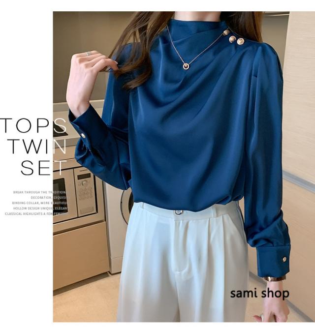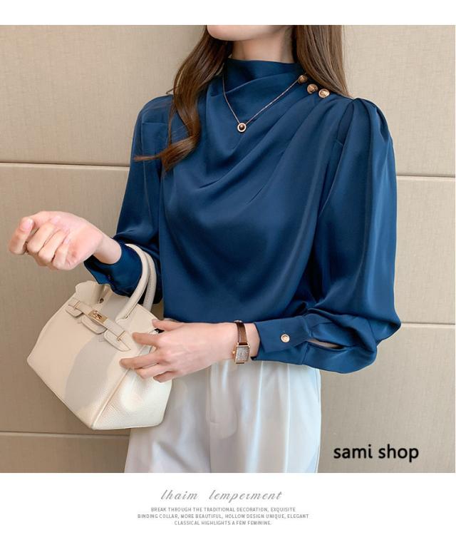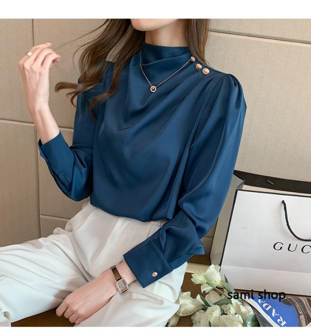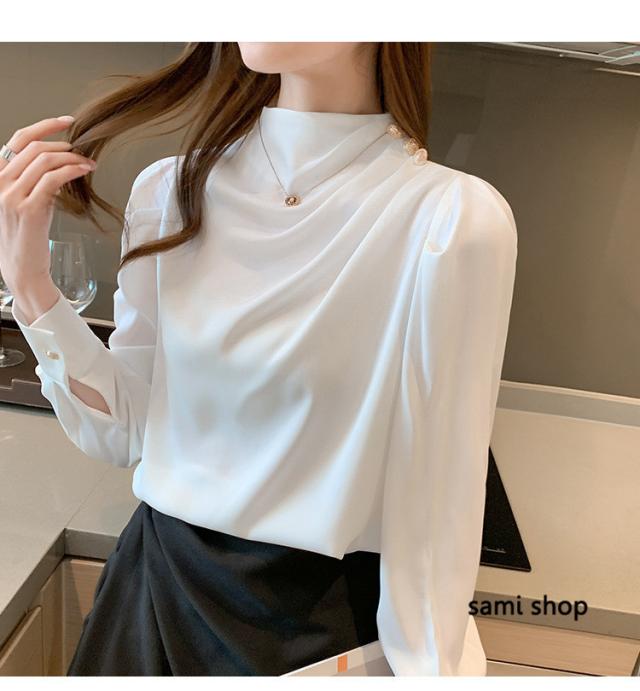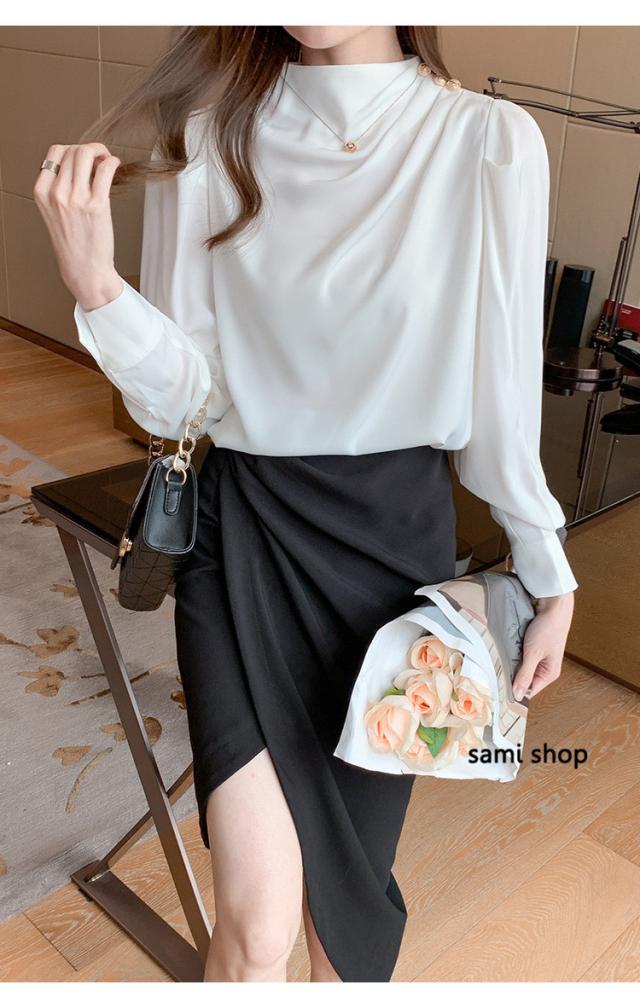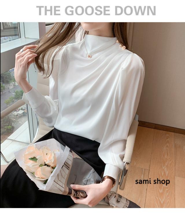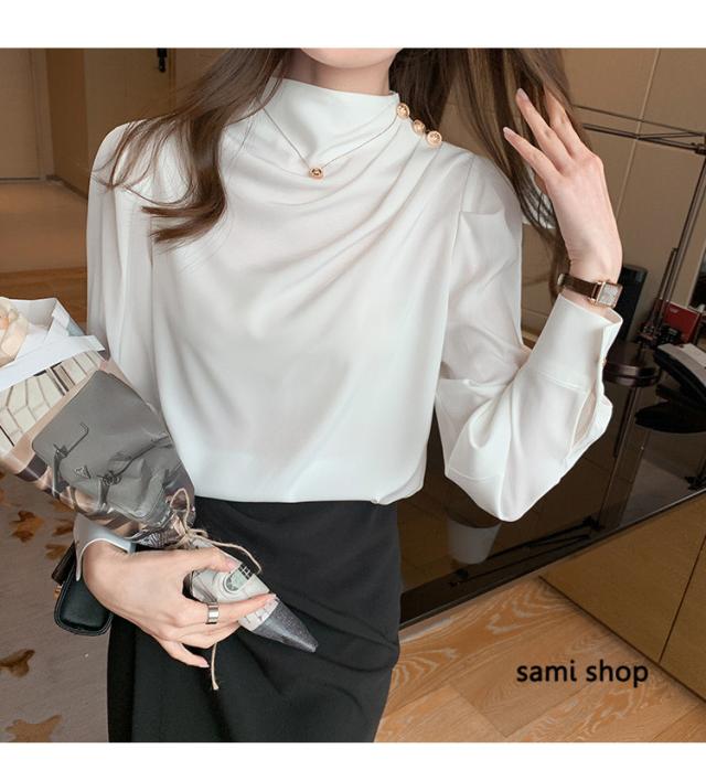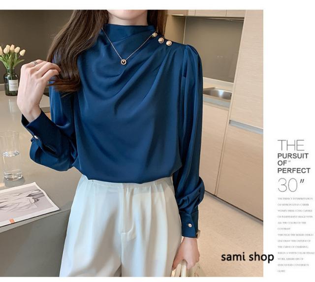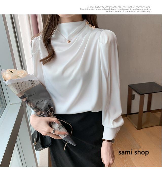 ブラウス レディース 長袖 おしゃれ 40代 春秋 上品 白トップス オシャレブラウス シルク風シャツ フォーマル ゆったり 30代 50代