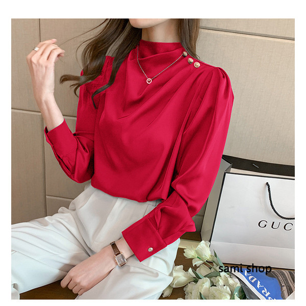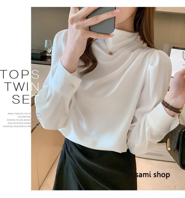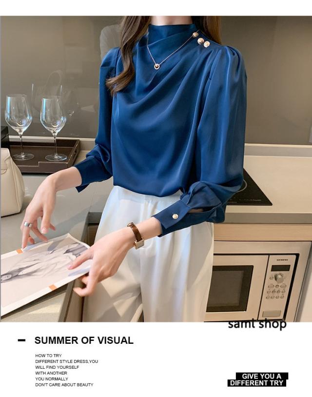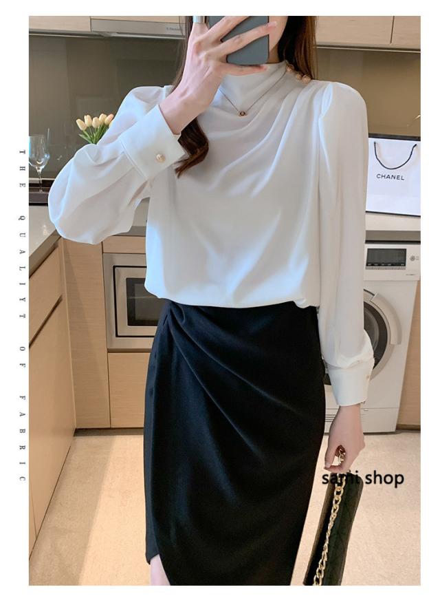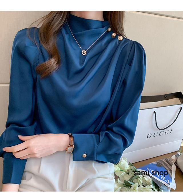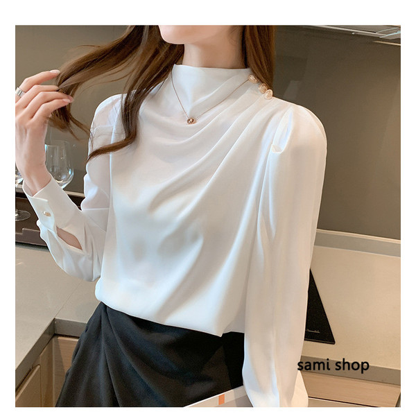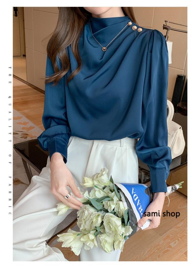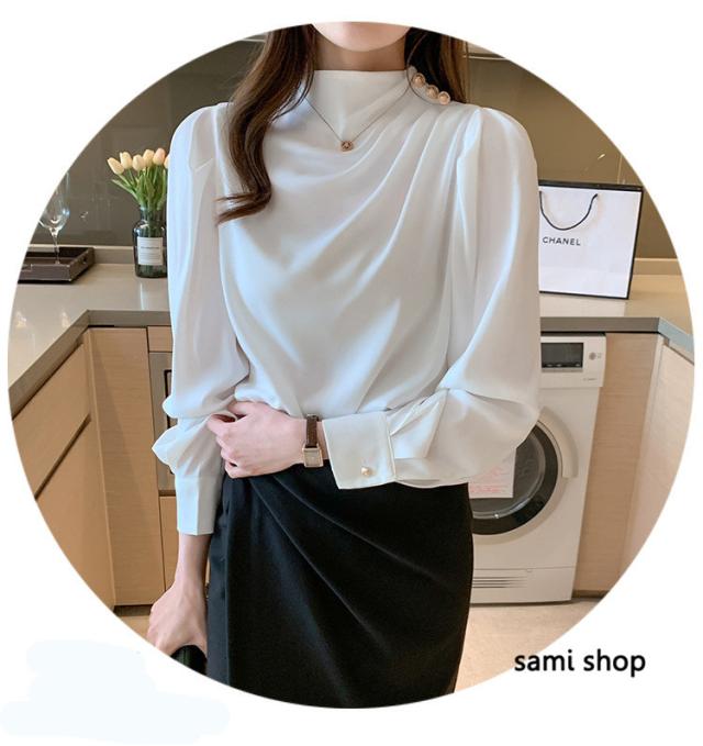 ブラウス レディース 長袖 おしゃれ 40代 春秋 上品 白トップス オシャレブラウス シルク風シャツ フォーマル ゆったり 30代 50代