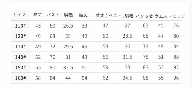 | サイズについての説明 | キッズ セットアップ 子供服 女の子 卒業式 パンツスーツ 女の子 フォーマル 結婚式 発表会 音楽会 入学式 スーツ 女の子服 3点セット■セット内容:トップス+パンツ+ベスト■サイズ(cm):サイズ表に参考してください。■注意事項:※サイズは、実寸サイズを測っているため多少誤差がでる場合があります。※なるべく実際の商品に近い色味を再現しておりますが、 モニター等の条件により、画面上と実物では色味が異なって 見える場合がございます。あらかじめご了承下さい。 |