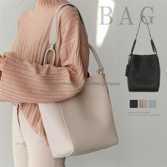 トートバッグ レディース ポーチ付き2wayバッグ スクエア ハンドバッグ シンプル 肩掛けバッグ カジュアル バッグ 2点セット