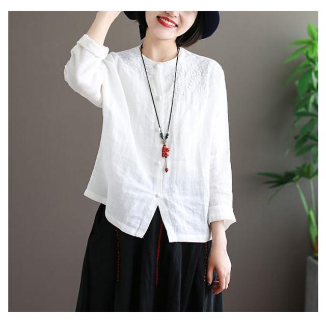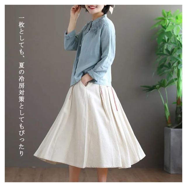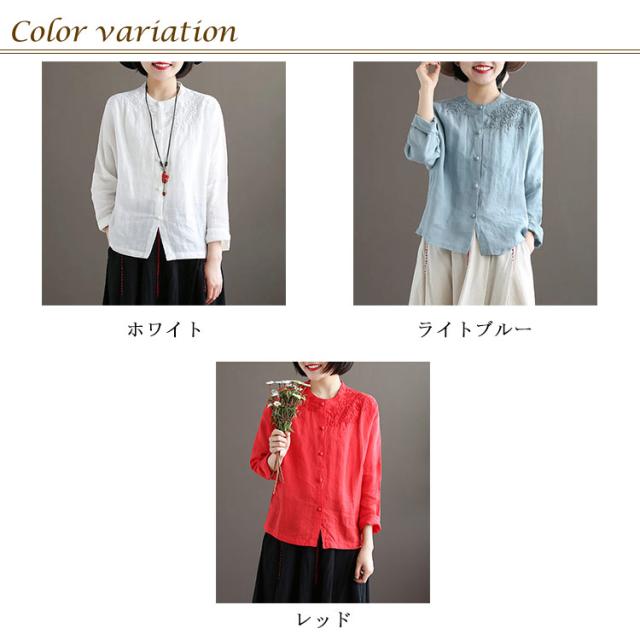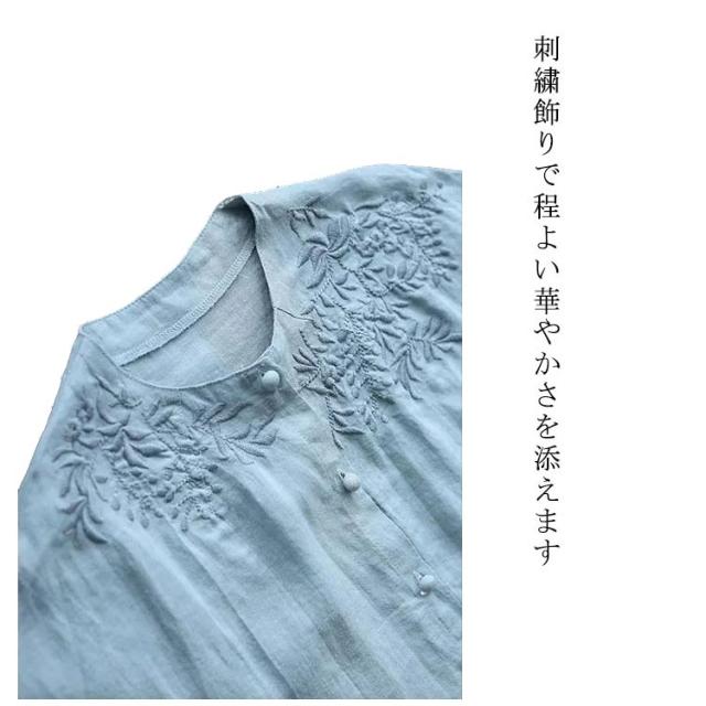 | 春秋に大活躍の刺繍リネンブラウス 肌に優しい上品な素材を使用します 刺繍飾りで程よい華やかさを添えます コーデしやすい3カラー展開 日常にも通勤にも幅広く活躍できます 一枚としても、夏の冷房対策としてもぴったり | |