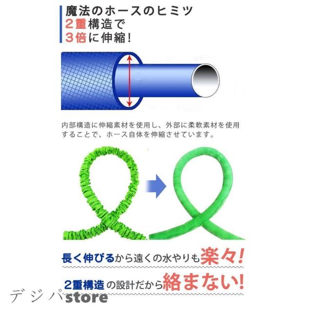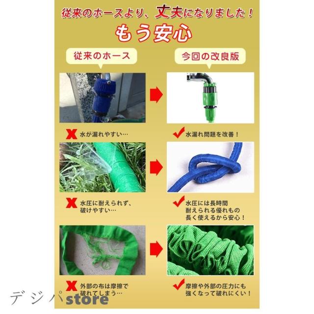 伸びるホース 3倍に伸びる 5m-20m ノズル付き 伸縮ホース 魔法のホース 散水ホース マジックホース 改良版