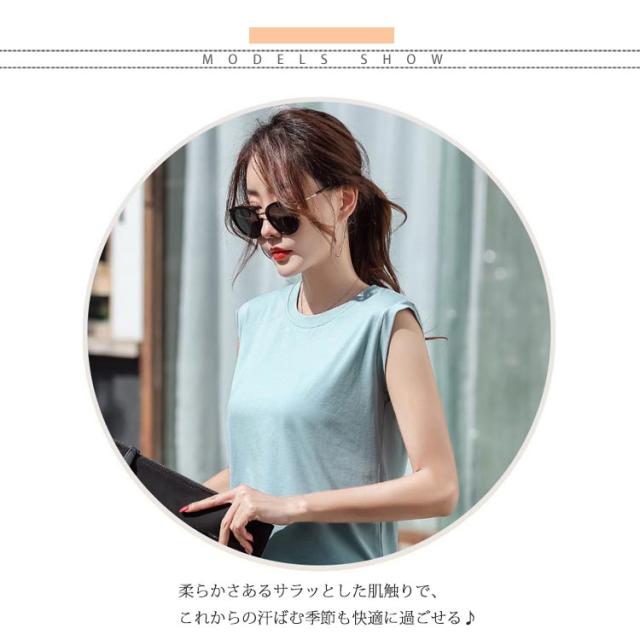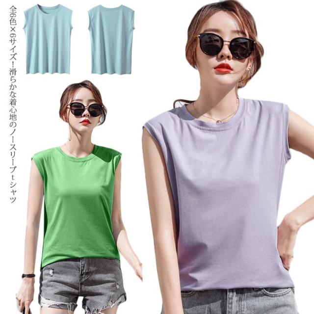 ノースリーブカットソー レディース ノースリーブトップス ノースリーブtシャツ カットソー トップス ラウンドネック 無地 綿 コットン 送料無料 夏