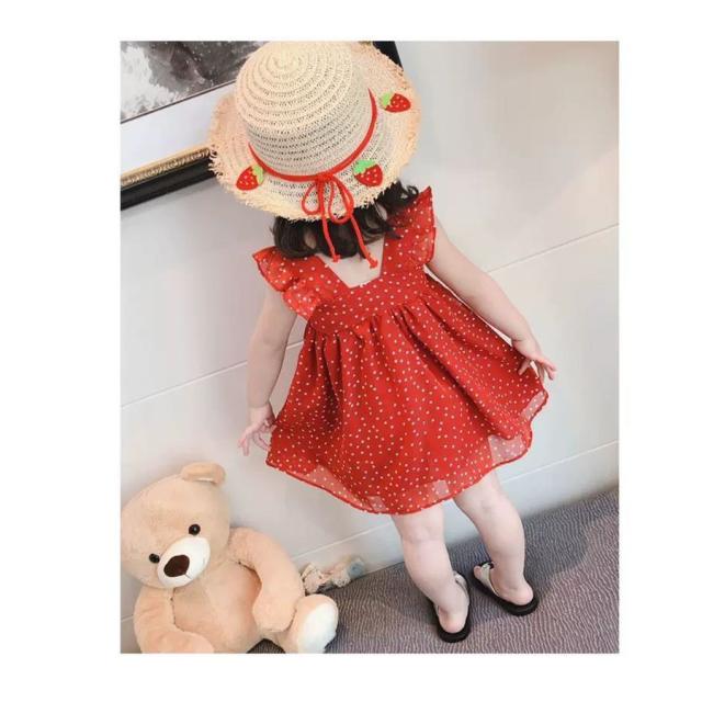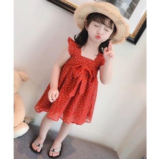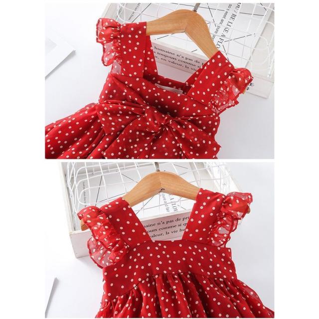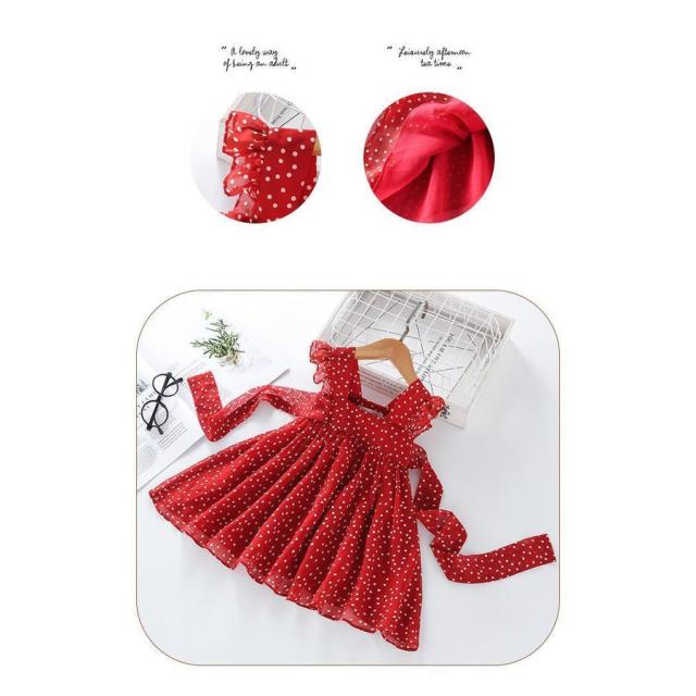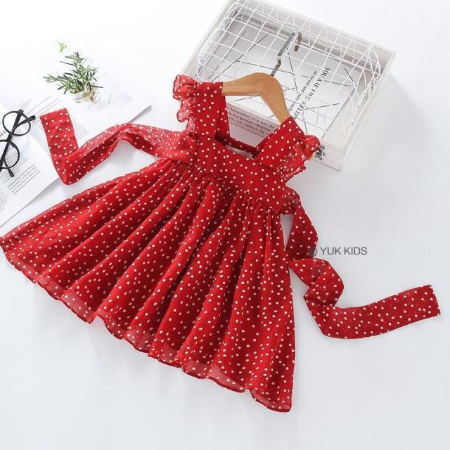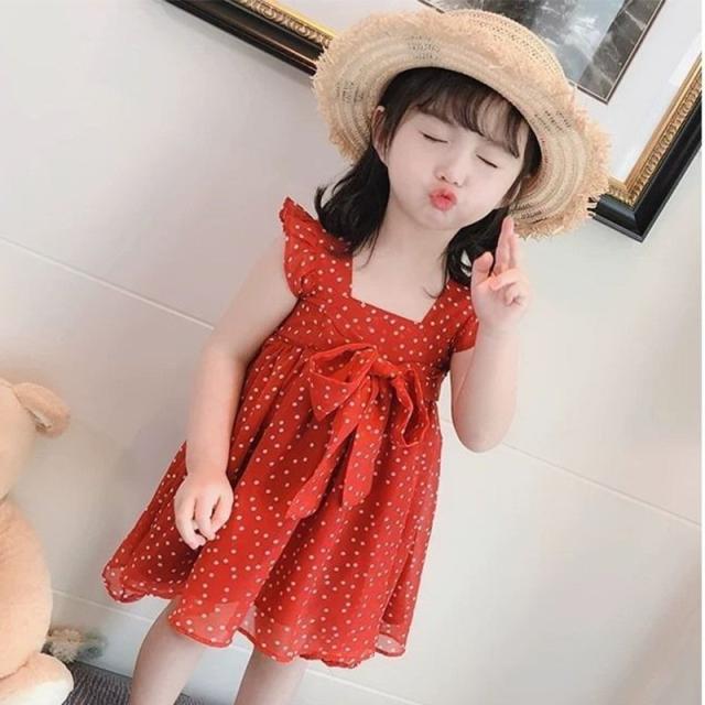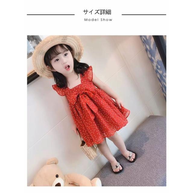 子供服 ドット柄ワンピース ボヘミアン ロング 女の子 レッド シフォン 半袖 オフショルダー サンドレス リゾート おしゃれ 子ども服 夏 ビーチ 人気 可愛い