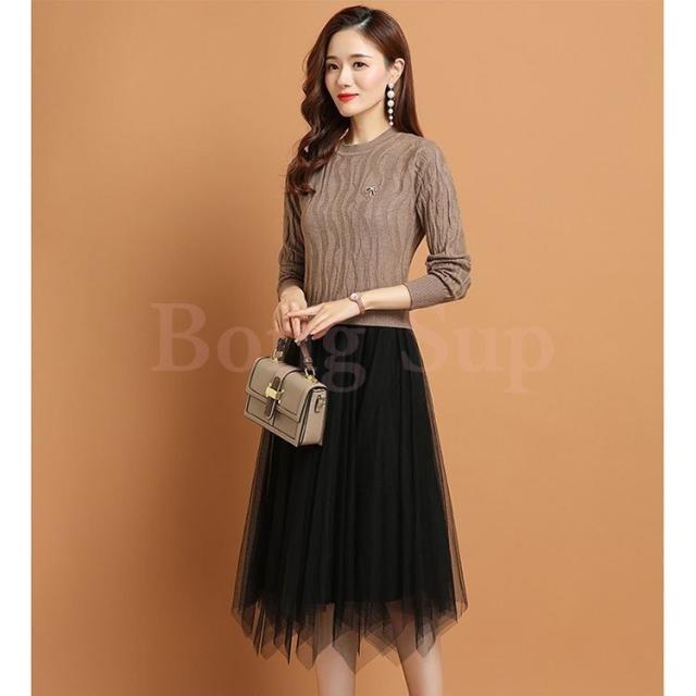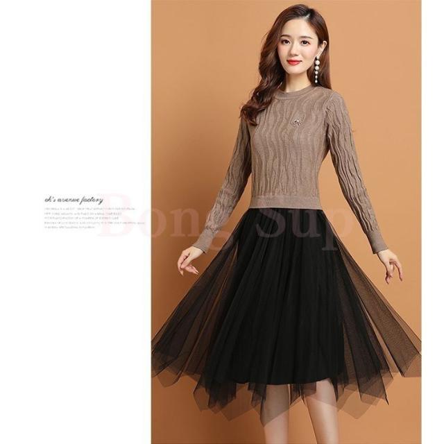 | サイズについての説明 | 【サイズ】:(約)*着丈:109cm *バスト:84cm *肩幅:37cm *袖丈:56cm連携キーワード:ニットワンピース レディース 40代 秋冬 きれいめ 膝丈ワンピース 長袖 配色 シースルー スカート ニット 結婚式ドレス 通勤 着痩せ オシャレ |