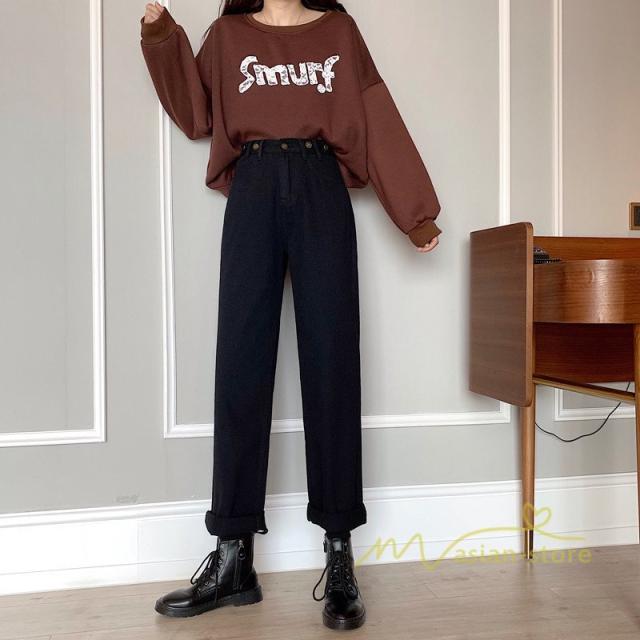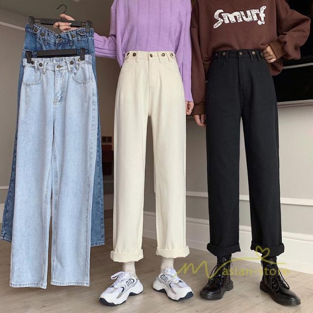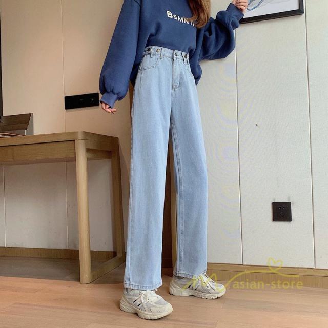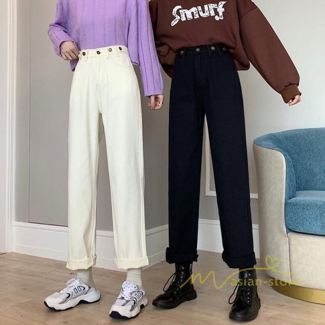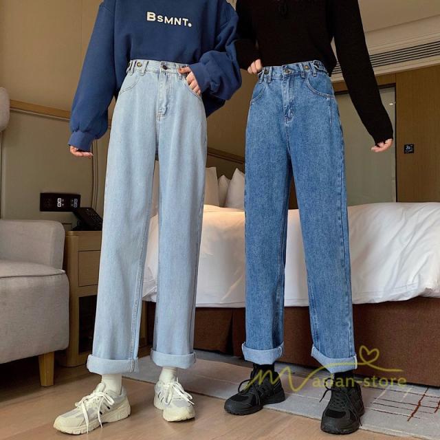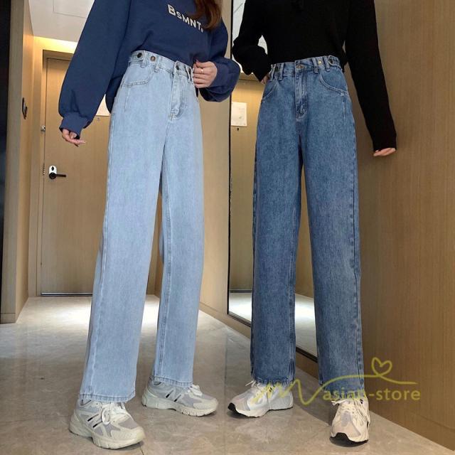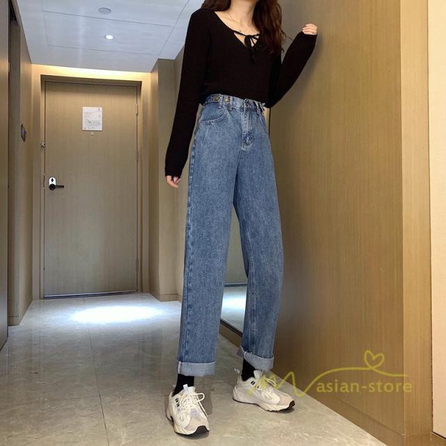 デニム パンツ レディース ストレートパンツ ジーンズ ボトムス ゆったり ワイドパンツ ズボン お洒落 カジュアル ロールアップ ゆるシルエット ハイウェスト