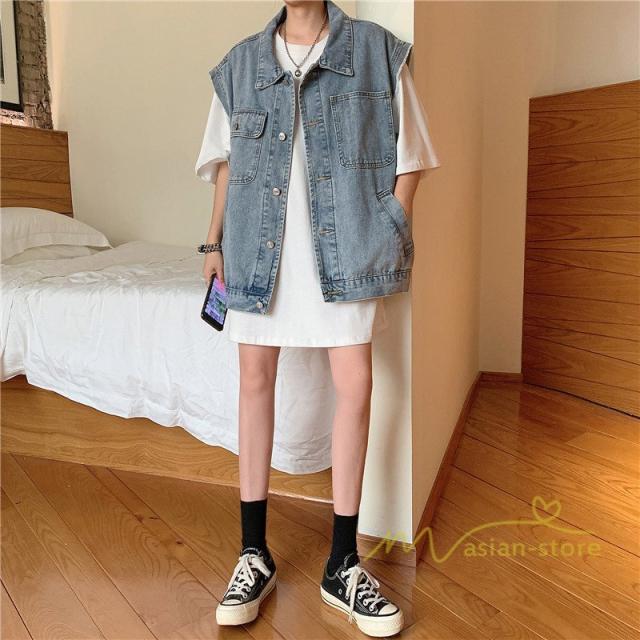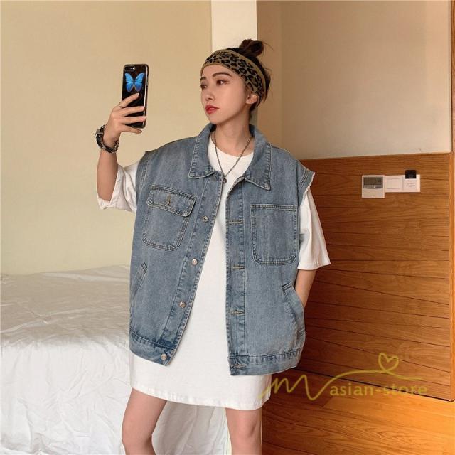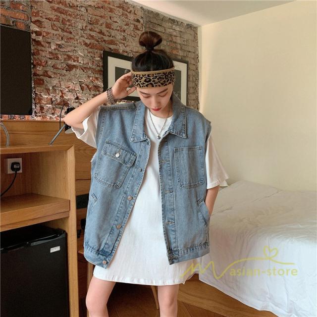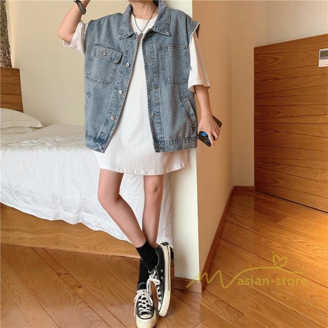 デニムジャケット レディース デニムコート ジージャン デニム アウター 袖なし ブルゾン ジャケット スプリングコート 長袖 Gジャン 原宿 カジュアル ゆったり