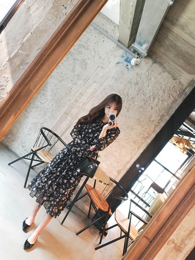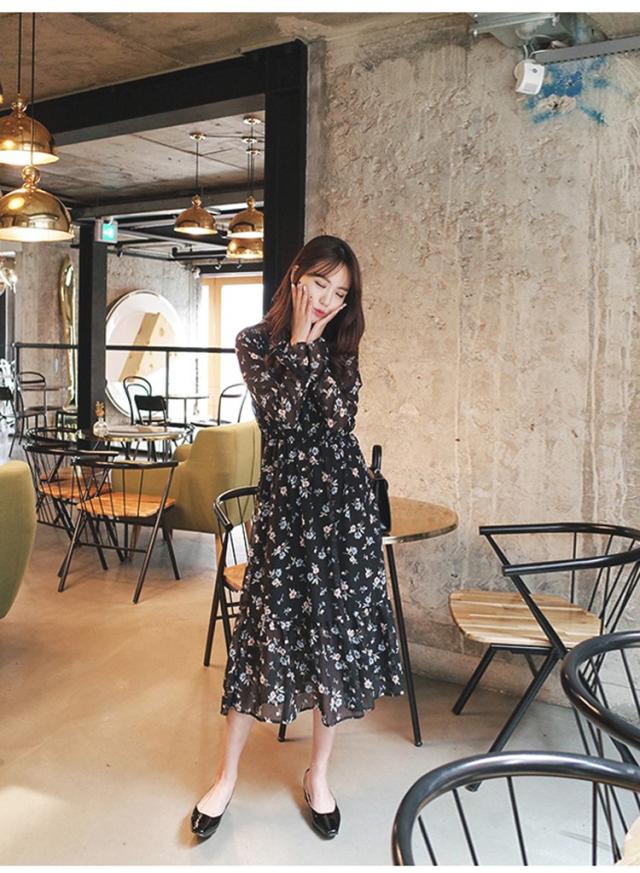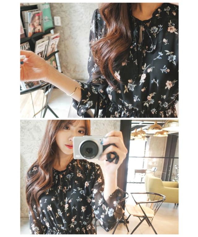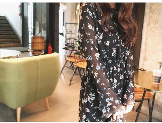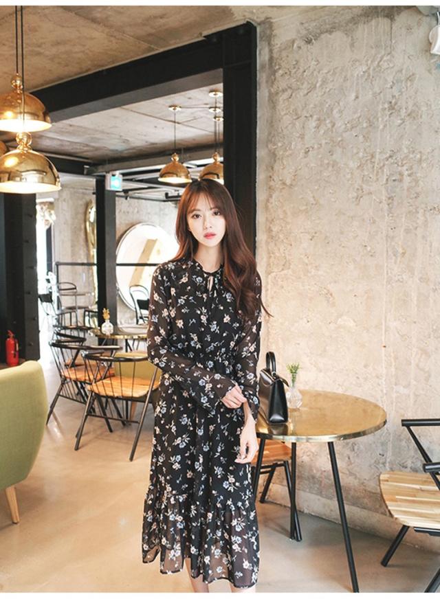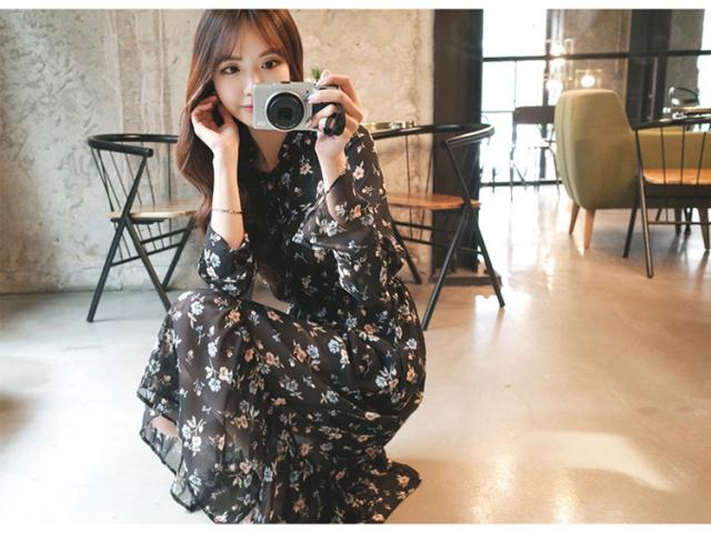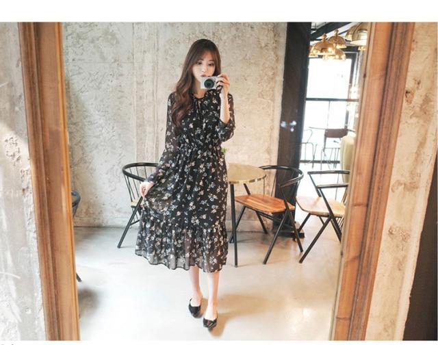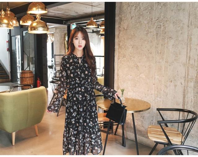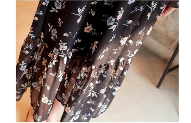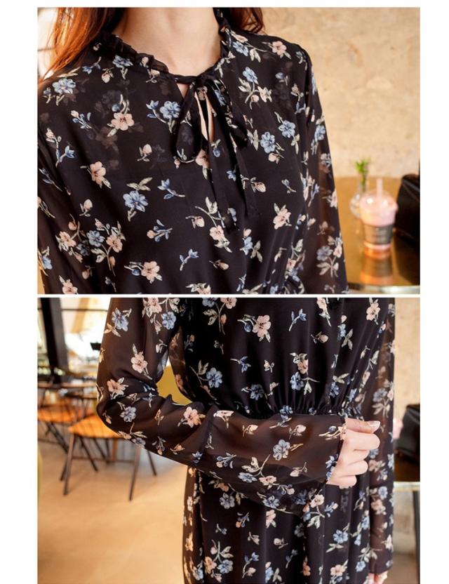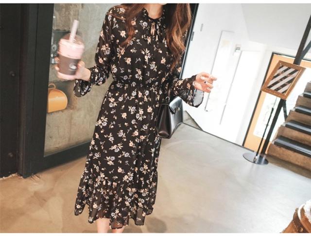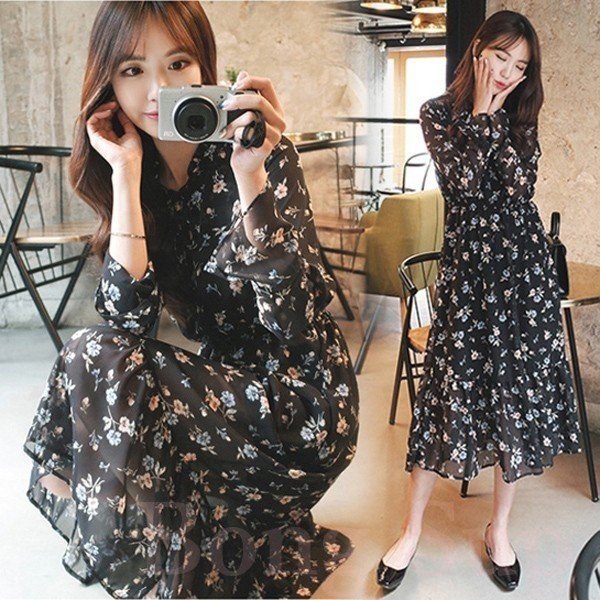 ワンピース レディース 春夏 マキシ丈ワンピース きれいめ 大きいサイズ 花柄 シフォンワンピース 長袖 通勤 韓国風 マキシ丈ワンピース 着痩せ カジュアル