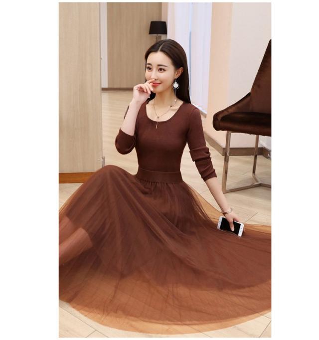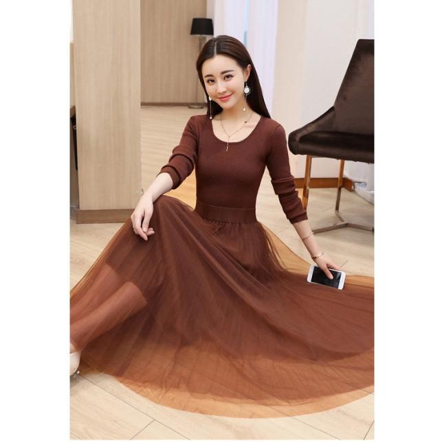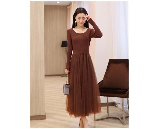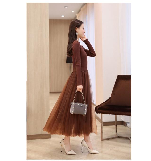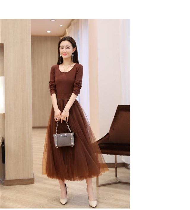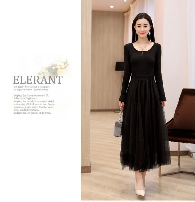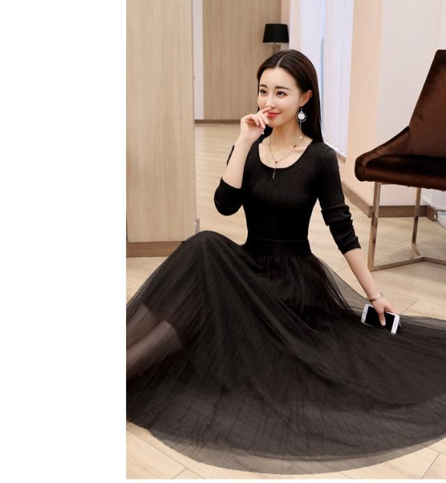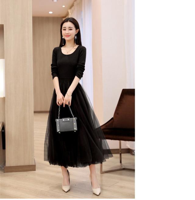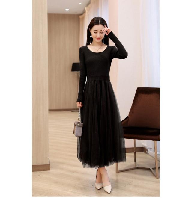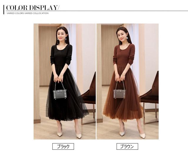 ワンピース レディース 40代 秋冬 マキシワンピースドレス 長袖 きれいめ チェールスカート プリーツワンピ Uネック 結婚式ドレス パーティードレス 2色