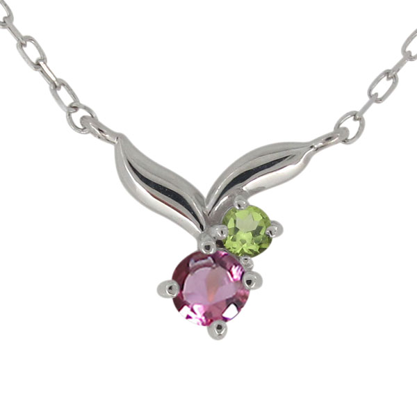 10月誕生石ピンクトルマリンを使用したプラチナ製の、リーフ(葉っぱ)モチーフレディースネックレス(ペンダント)です。